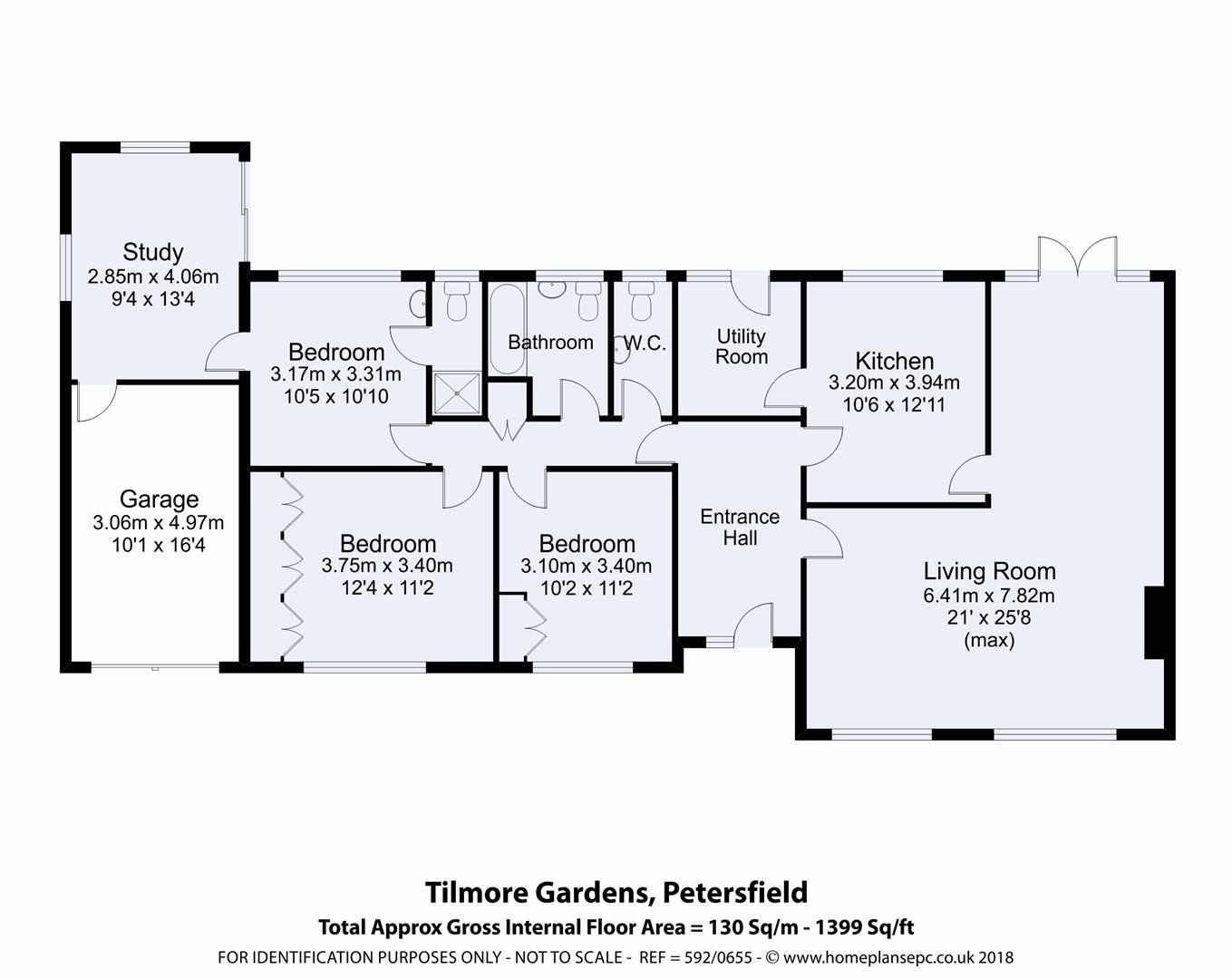 Set back from the road, with a pretty front garden and driveway parking, this well maintained detached bungalow enjoys light and spacious rooms. The flexible accommodation comprises of a good size entrance hallway, l-shaped dual aspect living room with fire place, dining area with doors to the rear garden, well equipped kitchen, separate utility with door to the rear garden, three bedrooms, study, refitted bathroom and guest cloakroom, en-suite shower room to master bedroom and garage. The attractive and secluded rear garden is laid mainly to lawn along with a patio and borders with mature shrubs.