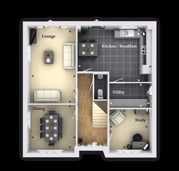 The Bungalow is a two bedroom home featuring a kitchen/breakfast area and a spacious living area with French doors leading to the rear garden. A separate dining room and study complete this floor. Upstairs is home to a spacious master bedroom featuring fitted wardrobes and an en suite shower bathroom, along with another double bedroom with an en suite shower room