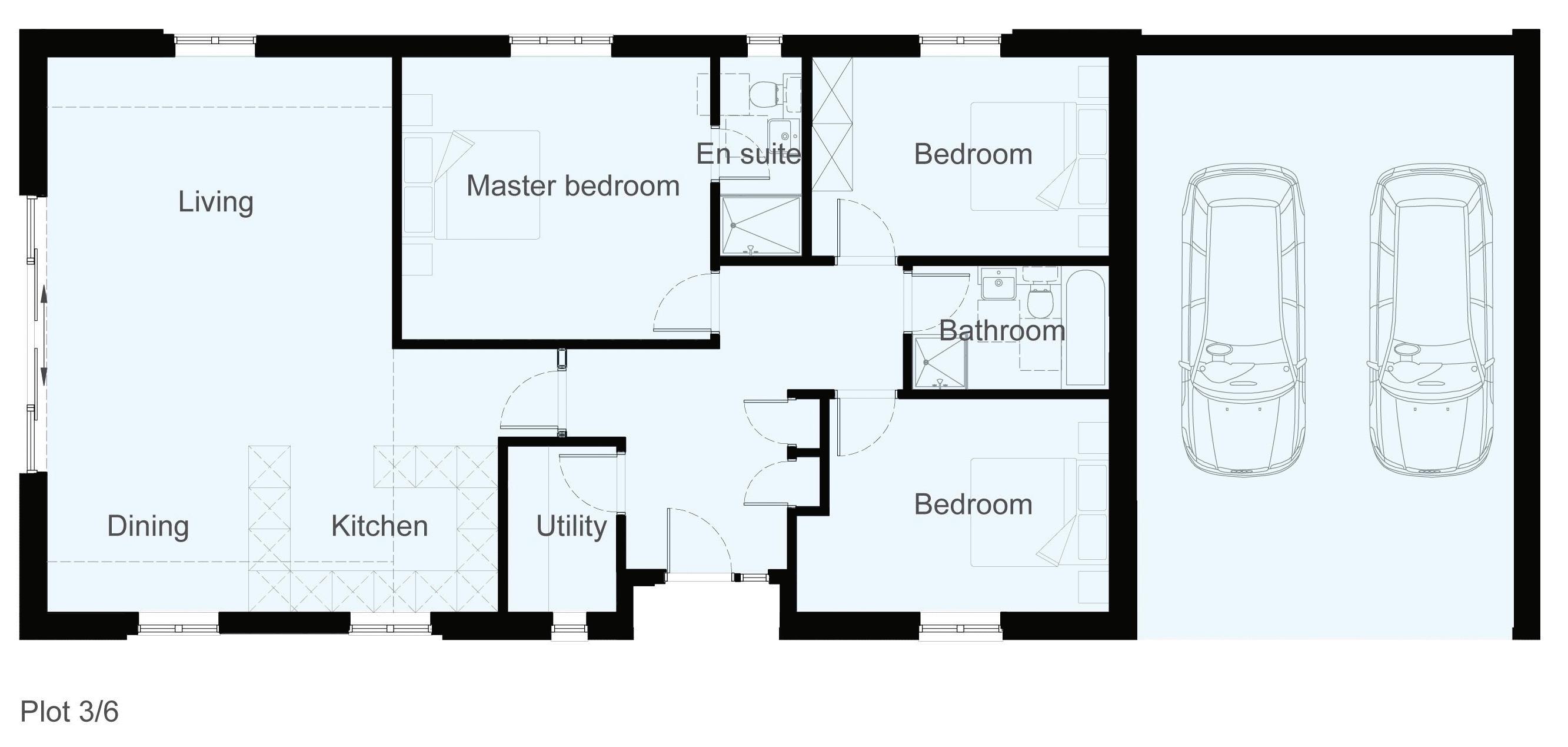 Plots 1 through to 6 are ideally situated with generous gardens, enjoying outstanding views over the adjoining fields and towards the Mendip Hills in the distance. They all comprise of three good bedrooms, a light and spacious open plan kitchen, living and dining room, complete with a quality range of kitchen units including integrated appliances. Furthermore, there is a family bathroom, en-suite shower room to the master en-suite, both of which also benefit from quality fixtures and fittings, and a utility room. The bungalows will all have gas fired underfloor heating, double glazing and excellent insulation throughout. Final details in respect of the specification and finish to be confirmed.