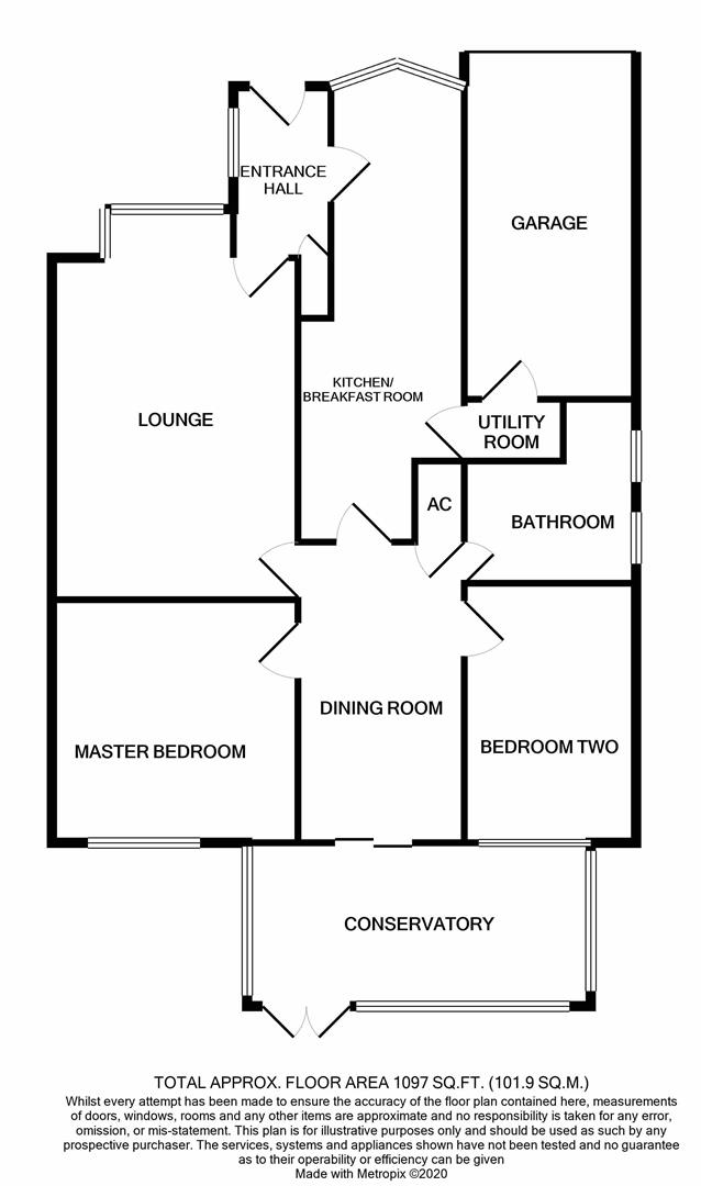 To the front of the bungalow there's a door to a hallway with a cloak cupboard and doors to the accommodation. First off is the lounge, located to the front of the property and with a gas fire and stone fireplace. A door from here leads to the dining room, which has an airing cupboard and doors off to the bedrooms and further accommodation, including the breakfast kitchen. Situated to the front, this has a good range of wall and base units with a built in ceramic hob, electric oven, and fridge. There's also a breakfast bar and a door to a utility, with a further door to the integral garage. The dining room also has patio doors to the conservatory which overlooks the garden and has French doors to the patio. The bedrooms are also off the dining room, and are both doubles, located to the rear of the bungalow. The fully tiled, four piece bathroom completes the accommodation and has a corner bath, separate shower cubicle, wash basin and WC.