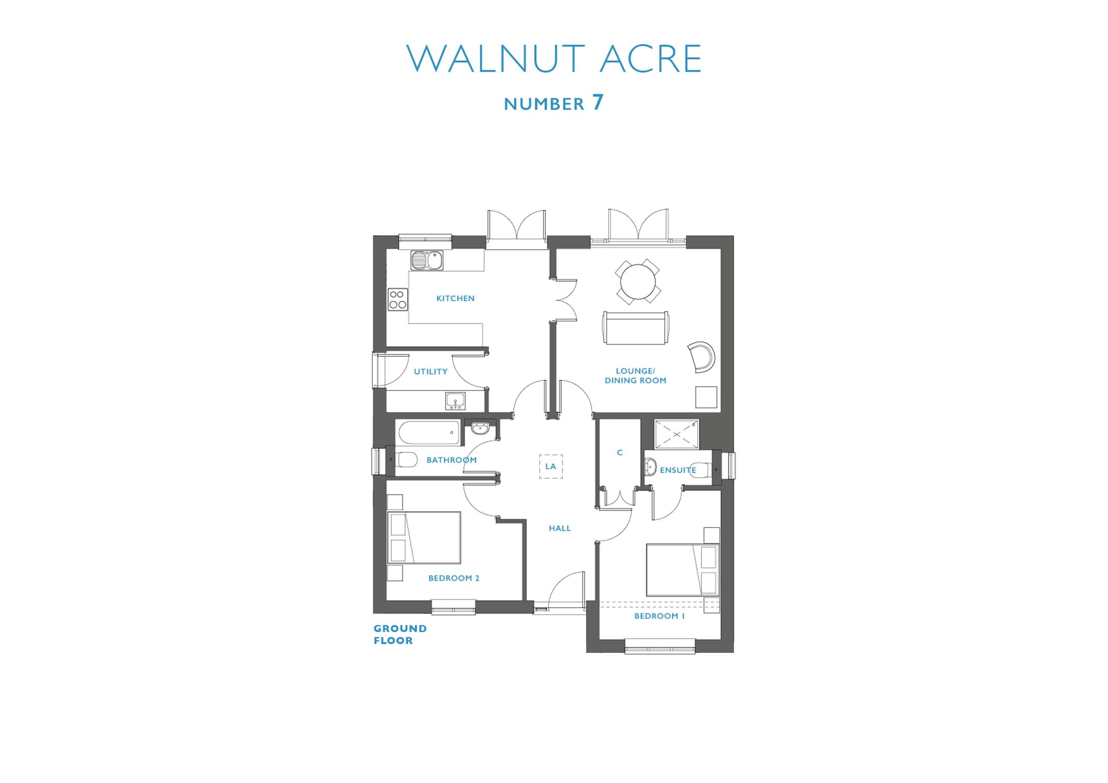 Williams Orchard is an exclusively private development of 11 homes offering high quality, good design and excellent craftmanship. This particular home has a sitting room with French doors leading to the rear garden, a kitchen/breakfast room also with French doors leading to the garden. There is also a useful utility rom with door to the side There are two double bedrooms with an en-suite to the master bedroom and a separate bathroom. The garden will be turfed and will have a patio area.