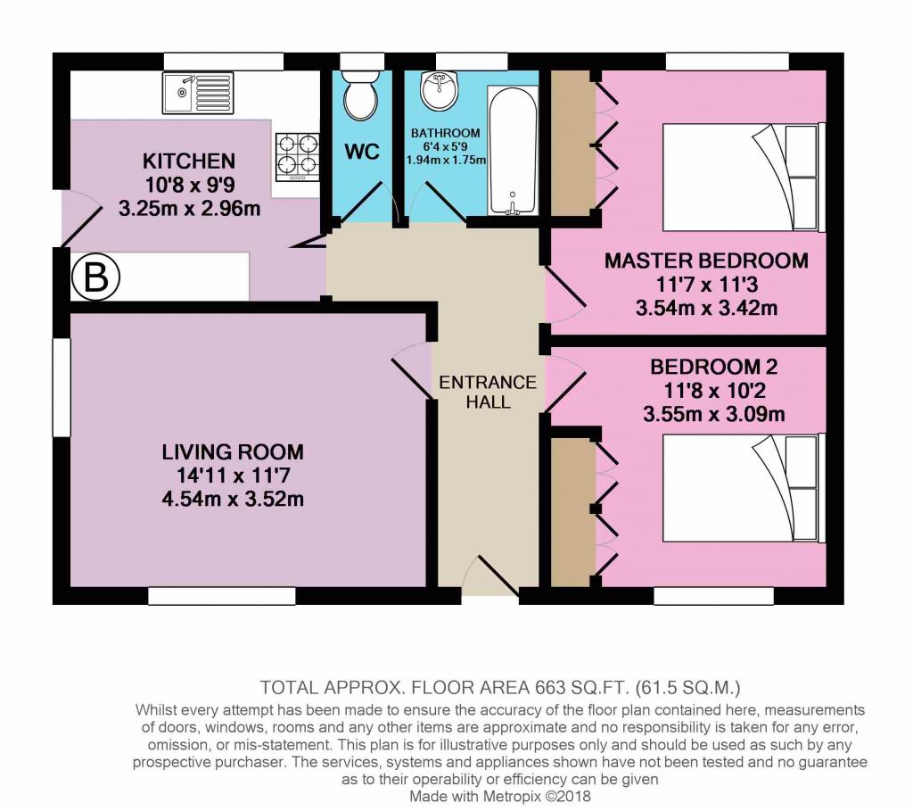 There are two double bedrooms, one at the front of the property and a second to the back with views of the garden. Both bedrooms have large build in wardrobes with shelving and hanging space. The bathroom is split with a separate WC and bathroom featuring bath and washbasin.