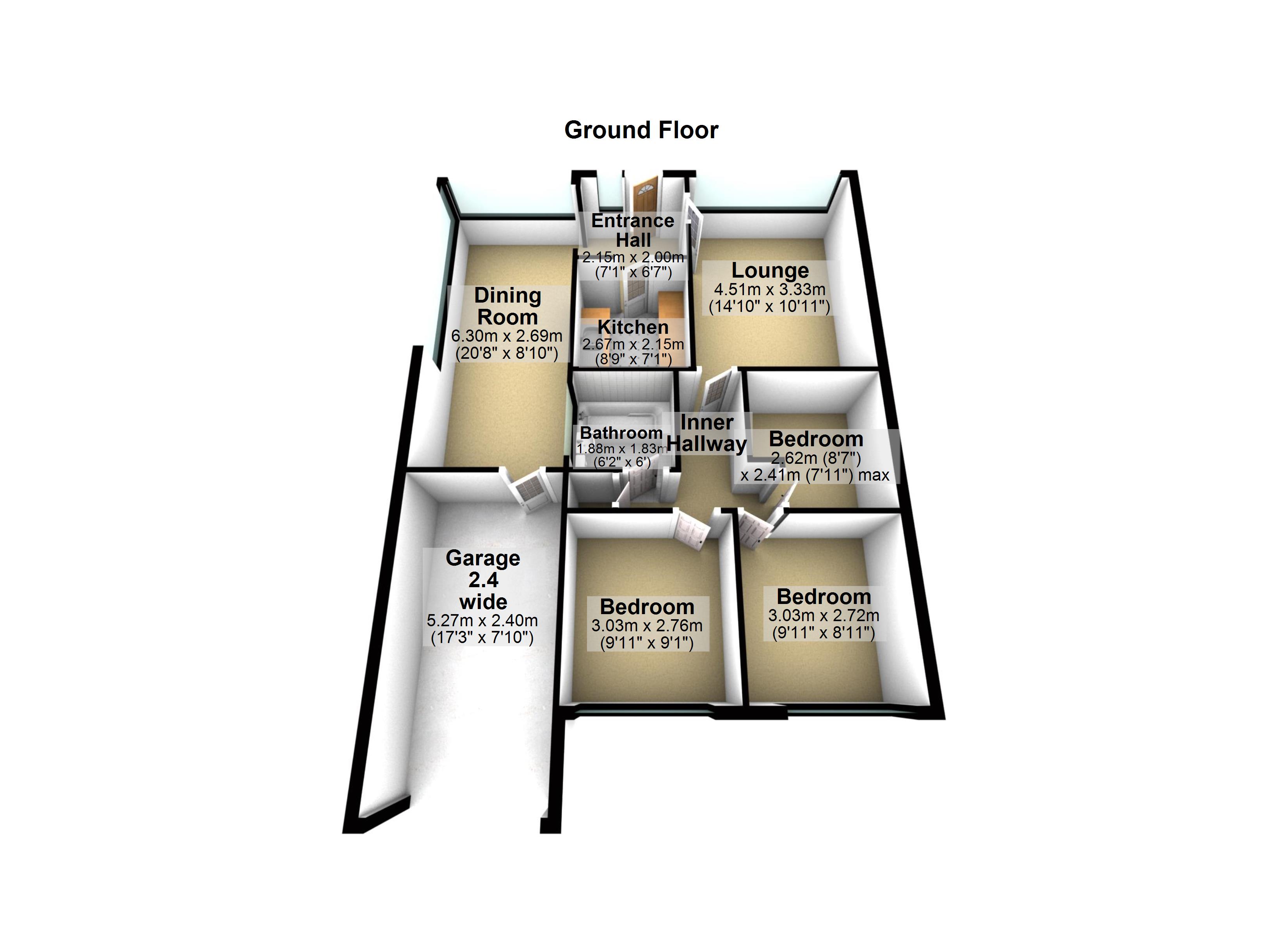 With a a light dining area overlooked by the open kitchen, this property makes the most of it's social space. With a separate large living room and two large bedrooms followed by a smaller third, this property has everything a family home needs!