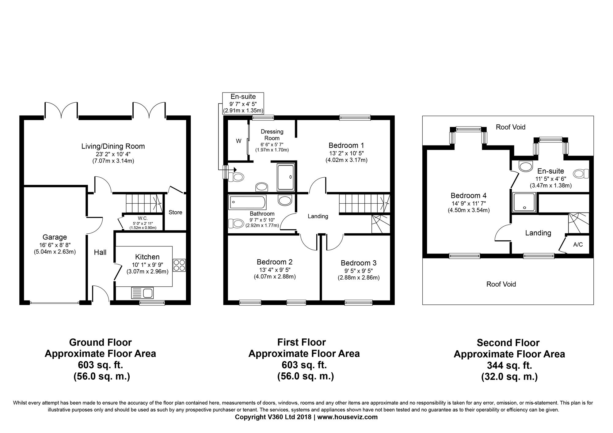 Bedroom 3: 9’ 5” (2.88m) x 9’ 5” (2.88m)