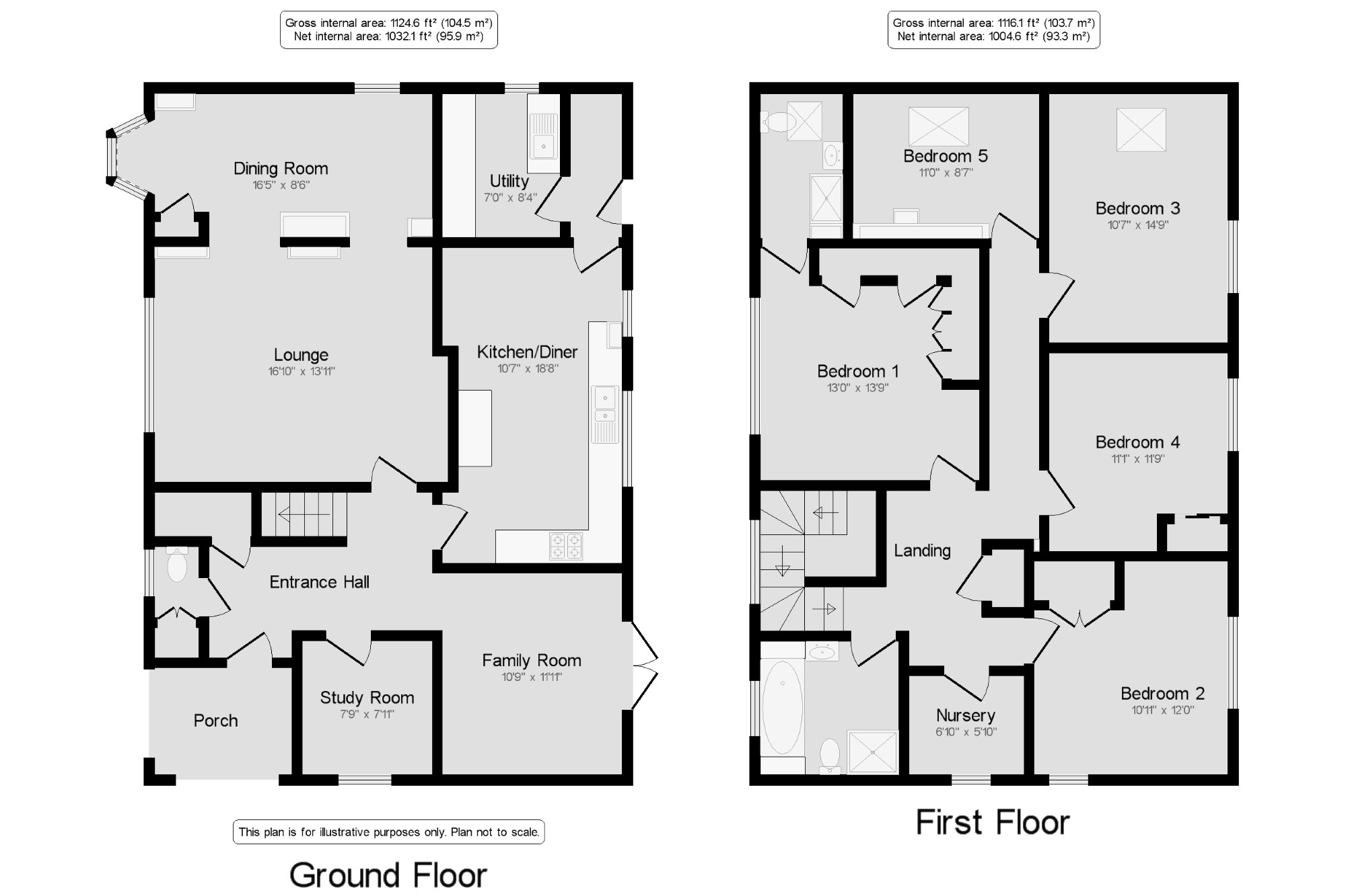 A beautifully presented five bedroom detached family home with separate lounge, dining room, family room and study.This bright and spacious property further features a refitted family bathroom with shower and a refiitted en-suite shower room to Bedroom one. Furthermore there is a well appointed kitchen / breakfast room with adjacent utility room and cloakroom WC on the ground floor and on the first floor there is a further room suitable for a nursery or another en-suite. The property is double glazed and has a gas fired central heating system. Externally parking is provided on drive for several cars and to the rear there is a generous size lawned garden with patio being fully enclosed.