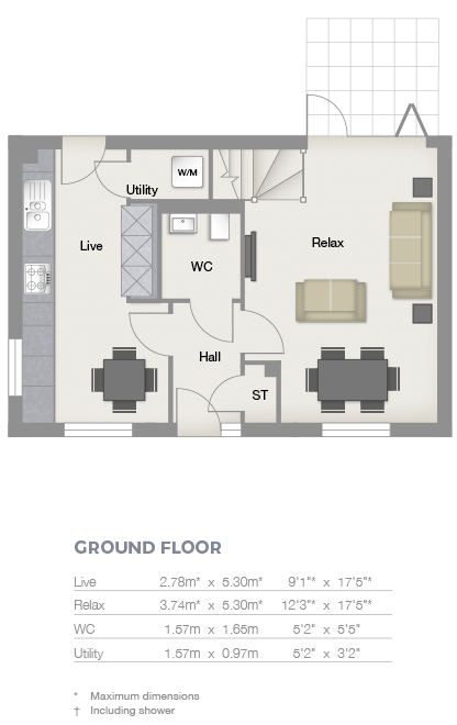 The hallway leads to a Milan-inspired kitchen, with integrated appliances, and dining area to the left. A utility cupboard with space for a washing machine can be reached from the kitchen. To the right is a light and spacious open plan living area extending, through bi-fold doors, into the rear garden. In addition, you'll find a large WC, featuring contemporary full-height tiling, and hallway storage cupboard.