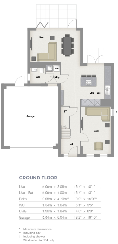 The hallway leads to a separate living room with walk-in bay - the perfect room for family members to relax. Beyond is a large Milan-inspired kitchen, with integrated appliances, an island in the middle of the room, allowing interaction whilst cooking and French doors opening onto the rear garden. The spacious and light open plan dining and living area extends, through bi-fold doors, into the rear garden. In addition, you'll find a large WC, featuring contemporary full-height tiling, storage cupboard and utility room which also provides separate access to the integral garage.