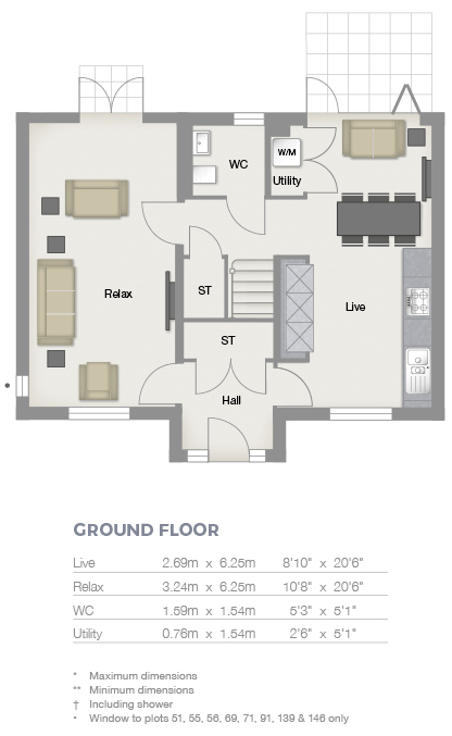 To the left of the wide hallway in The Danbury is a spacious and light dual aspect living room with bi-fold doors opening onto the rear garden - ideal for families wanting extra room to relax. To the right, as you enter, is a Milan-inspired kitchen, with integrated appliances and open plan dining and living area extending, through another set of bi-fold doors, into the rear garden. In addition, you'll find a large WC, featuring contemporary full-height tiling, and a separate utility cupboard, with space for a washing machine, a good size storage cupboard in the hallway and next to the stairs - ample storage for those who desire a clutter free home. Stairs are situated in the centre of the home to maximise space and create a unique layout.