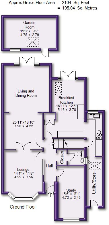 To the rear of the Garden there is a Detached Garden Room with a UPVC door and windows and inset Velux window.