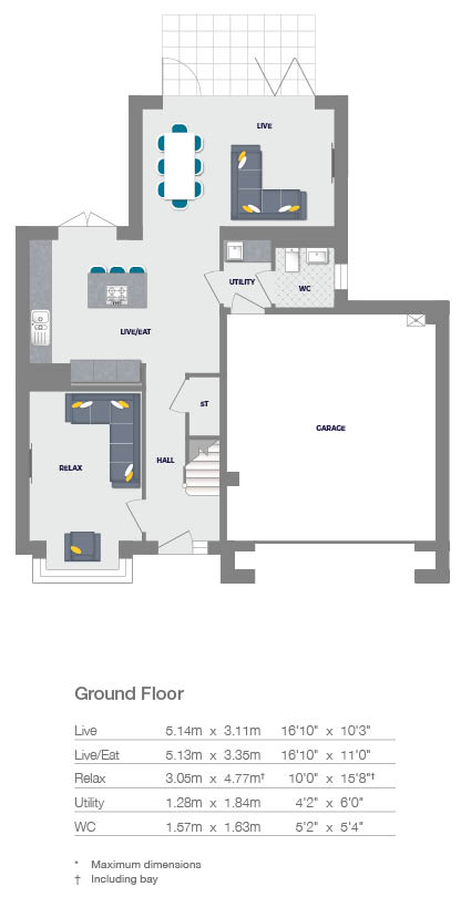 The hallway of The Welbury leads to a separate living room with walk-in bay - the perfect room for family members to relax. Beyond is a large Milan-inspired kitchen, with integrated appliances, an island in the middle of the room, allowing interaction whilst cooking and French doors opening onto the rear garden. The spacious and light open plan dining and living area extends, through bi-fold doors, into the rear garden. In addition, you'll find a large WC, featuring contemporary full-height tiling, storage cupboard and utility room which also provides separate access to the integral garage.