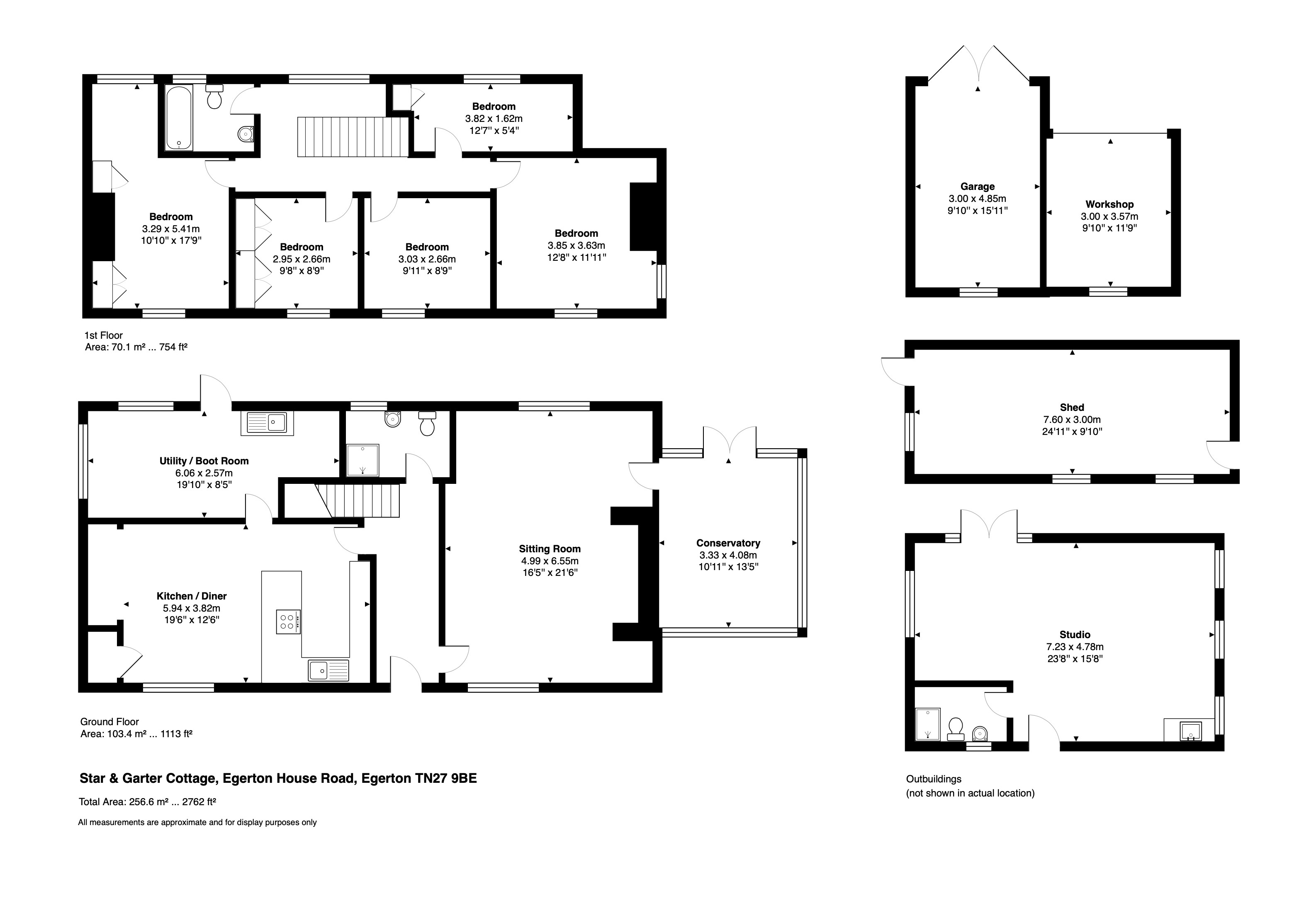 The exterior includes; a pretty garden that wraps around the rear of the property (approx. 0.5 acre), a large wooden framed studio / annexe with wood burner and exciting potential to convert into ancillary accommodation / 1-bedroom holiday let (subject to planning consent), garden shed / workshop, and adjacent field / paddock of approximately 1.5 acres.