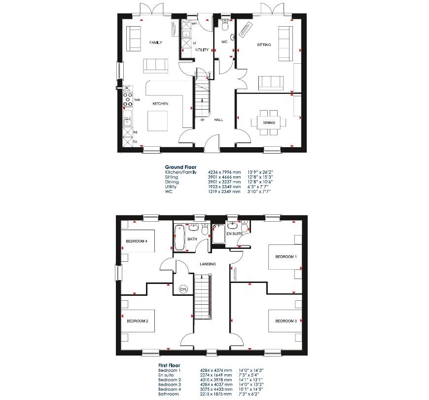 7 The Swere, is a stunning newly built property by David Wilson Homes. This large four bedroom home has lots of space for the whole family. The kitchen/breakfast/family room features French doors leading to the rear garden. The sitting room also has a set of French doors opening onto the garden, plus there is a separate spacious dining room to the front of the house. Upstairs there are four large bedrooms, the master with en suite shower room, and a family bathroom. Double length garage.