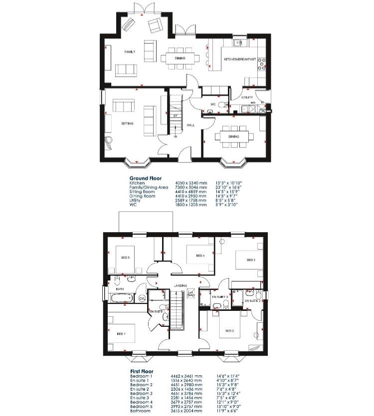 This is a superb five bedroom detached property, newly built by David Wilson Homes, and has no shortage of space for the whole family. The beautiful open-plan kitchen, dining and family area features French doors that open onto the rear garden. Double doors from the hall open into the bay-fronted sitting room and a dining room completes the ground floor. Upstairs there are five double bedrooms, three of which benefit from en suite shower rooms, plus a family bathroom.