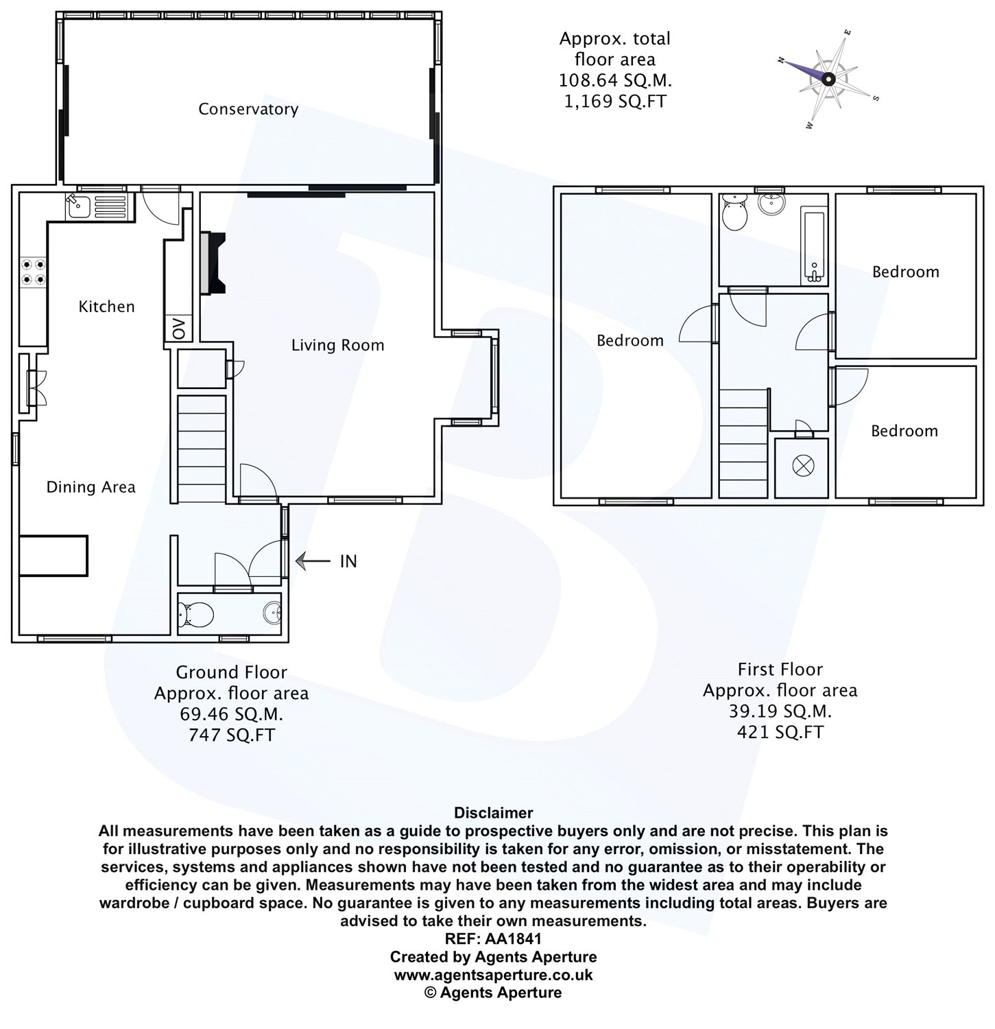 Access to loft with ladder, airing cupboard, doors to accommodation;