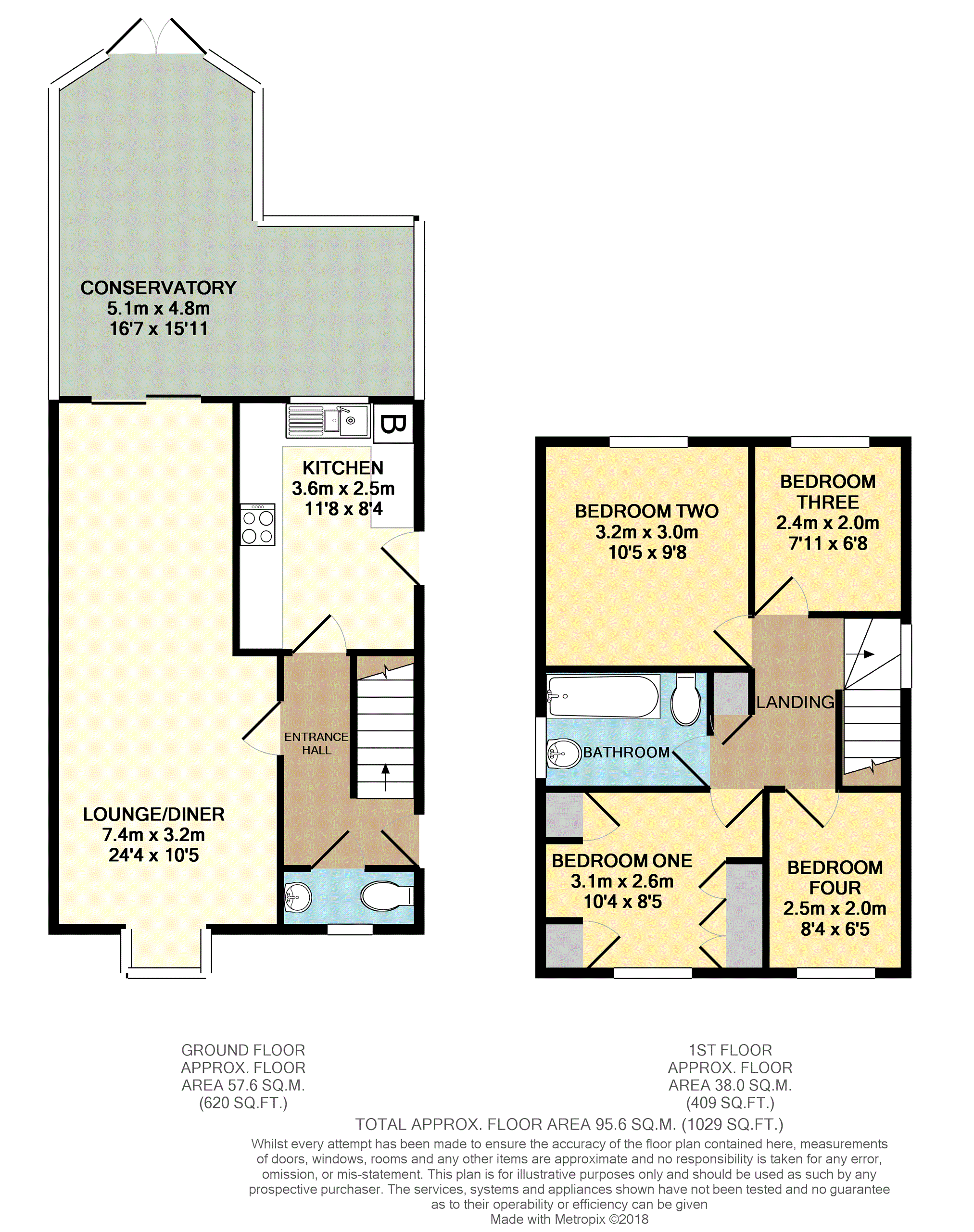 The accommodation comprises; an entrance hall, open plan lounge/dining room, fitted kitchen, large 'P' shaped conservatory and a cloakroom W.C. On the ground floor, with four bedrooms and a refitted bathroom on the first floor.
