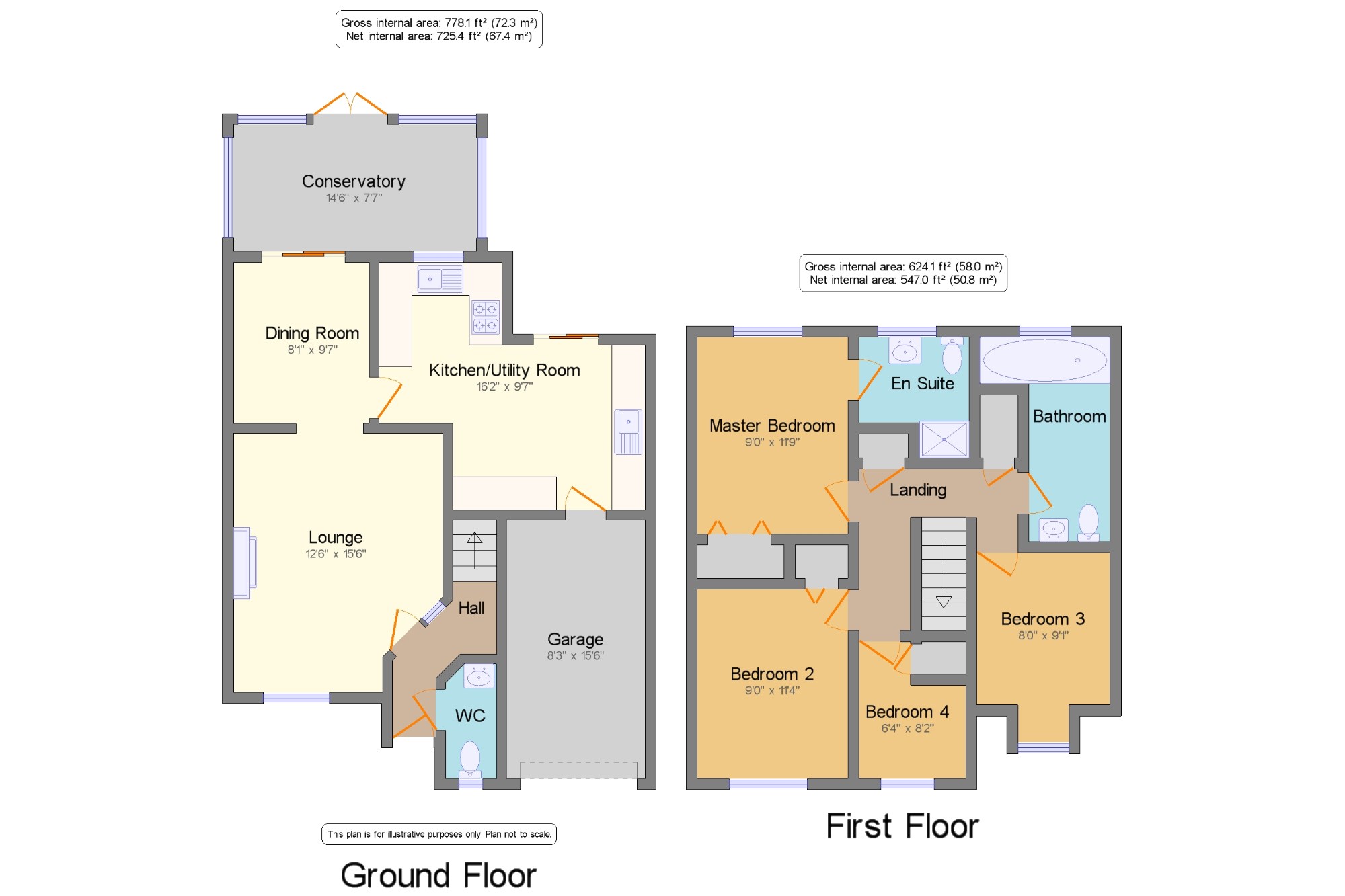 Master Bedroom9' x 11'9" (2.74m x 3.58m).
