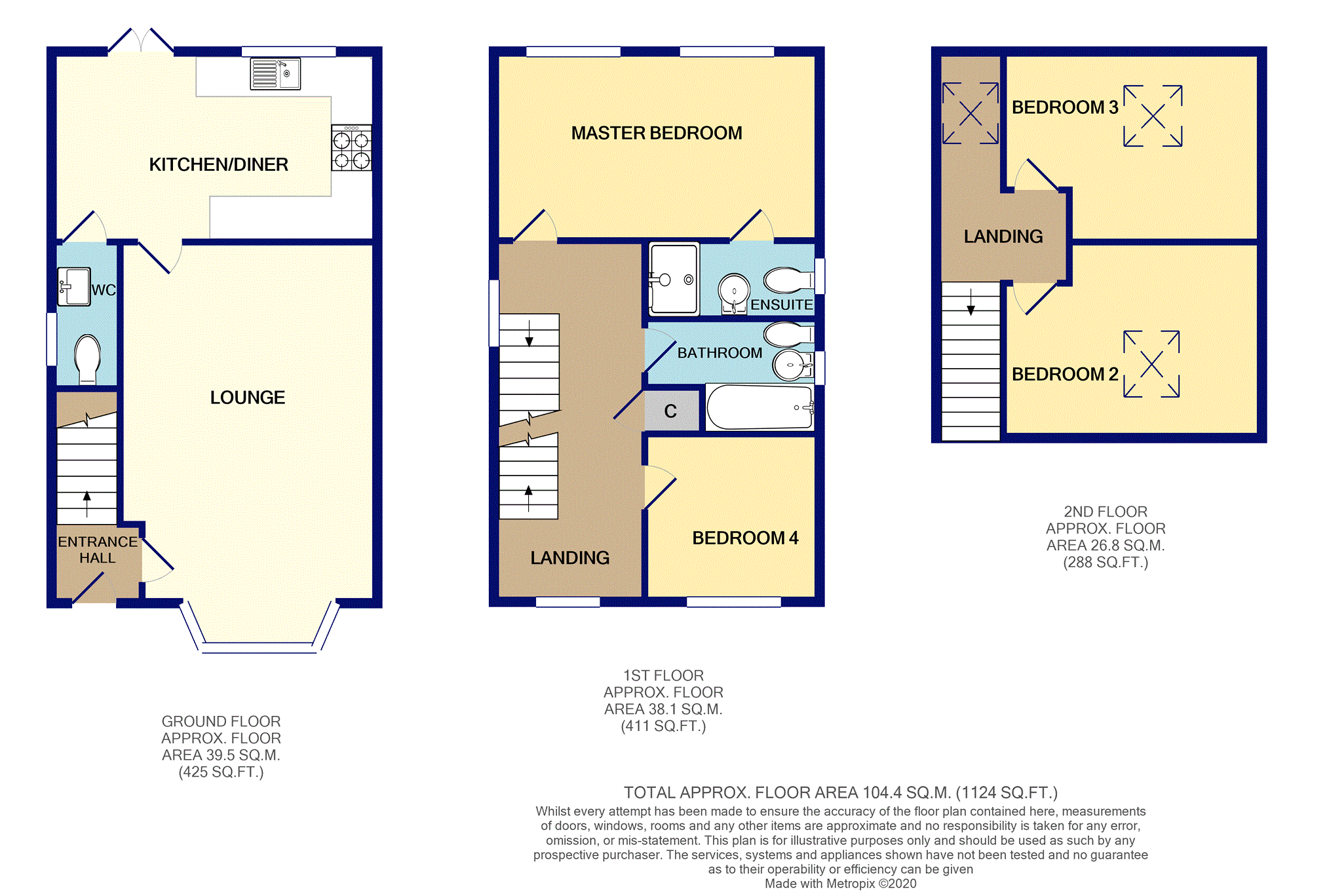 The accommodation comprises of entrance hall, great sized lounge, on trend modern grey kitchen/diner with french doors onto the rear garden plus downstairs cloakroom to the ground floor. Master bedrooms, with en-suite, family bathroom to the first floor, bedroom four which is currently laid out as a dressing room with sliding mirrored wardrobes, plus two further bedrooms to the second floor, (bedroom three currently used as study). The property is UPVC double glazed with gas central heating throughout.