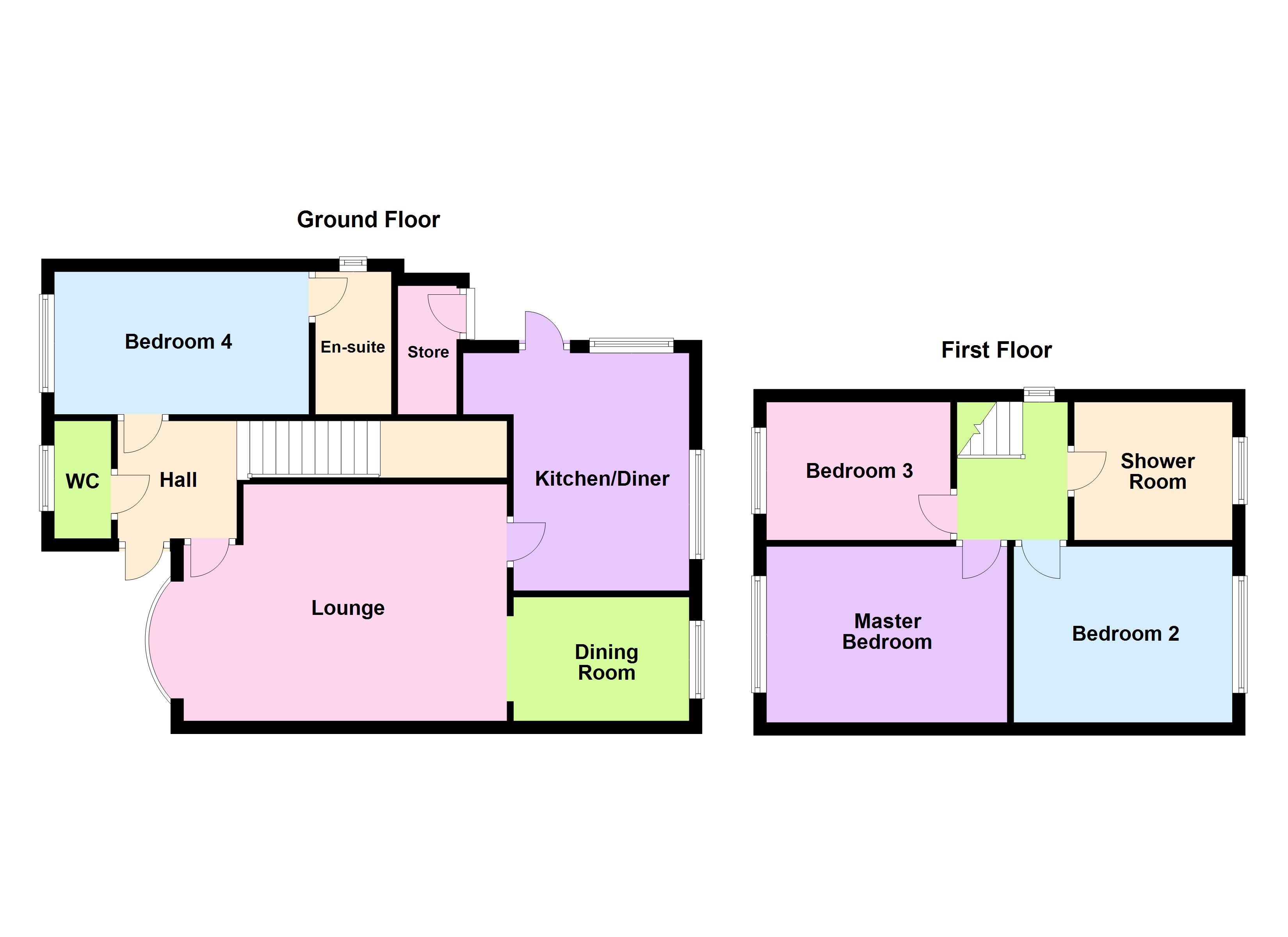 En-suite having opaque double glazed window to side, ceiling lights, heated towel rail, tiled floor covering, tiling to splash prone areas, a matching suite comprising of: Enclosed shower cubicle with thermostatic shower attachment and vanity unit incorporating wash hand basin.