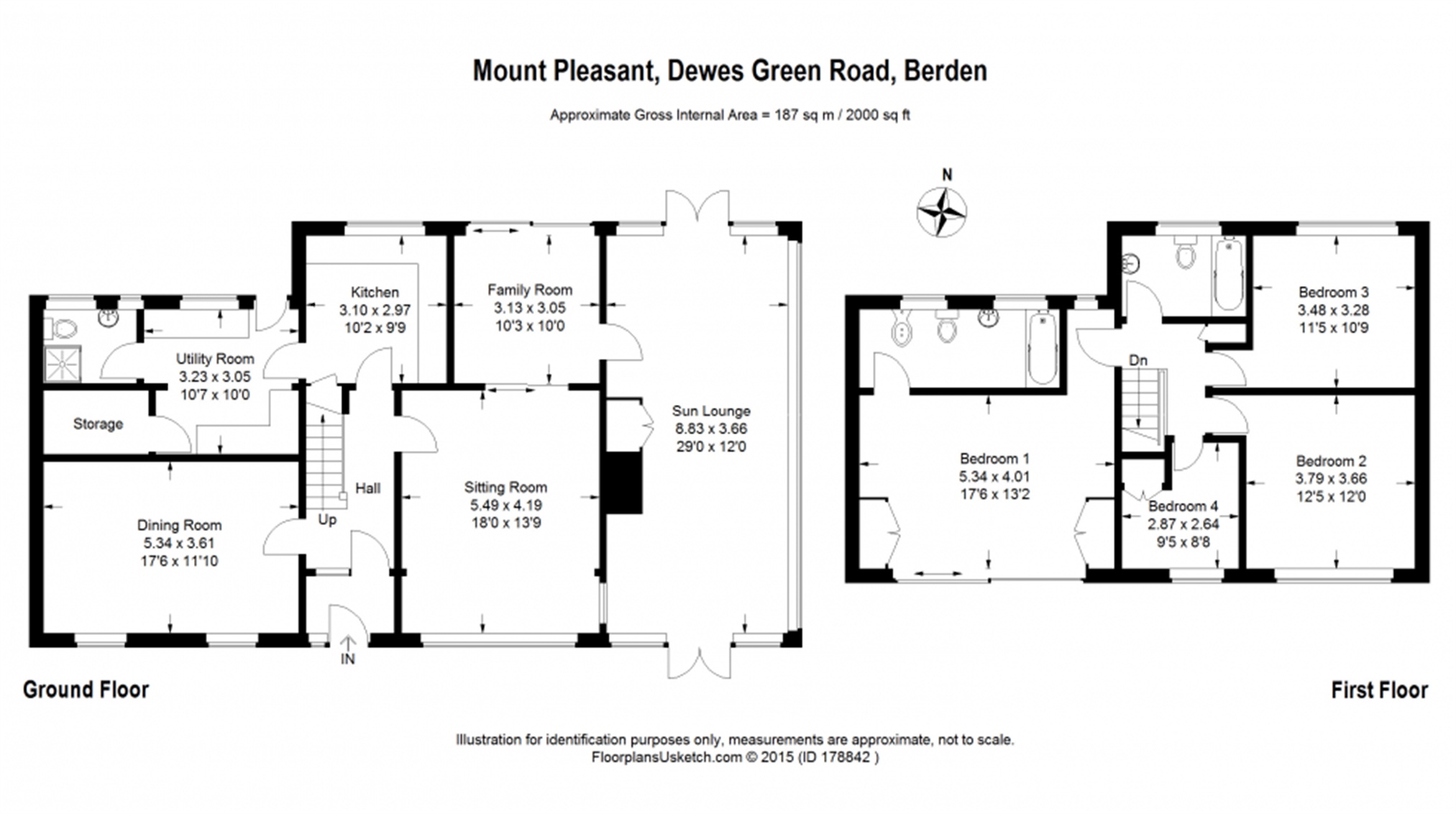 Description A unique and spacious four bedroom extended detached family home set in grounds of approximately 0.275 of an acre, in an elevated position with delightful views over the surrounding countryside, located on the edge of the pretty village of Berden. Being sold with full planning permission to build A 2 bedroom detached house - reference utt/17/2266/ful. The accommodation comprises entrance hall, dining room, lounge, family room/study, generous sun room, kitchen, utility room and cloakroom, whilst on the first floor there are four bedrooms, with an en-suite to the master bedroom and a family bathroom. To the front of the property is a driveway affording off street parking and a separate driveway to the rear leads to the double garage with the benefit of additional off street parking . The large front garden is laid to lawn with mature trees, shrubs and pond area while the generous rear garden is mainly laid to lawn with well stocked mature trees and shrubs. Additional benefits include oil fired central heating and UPVC double glazing.
