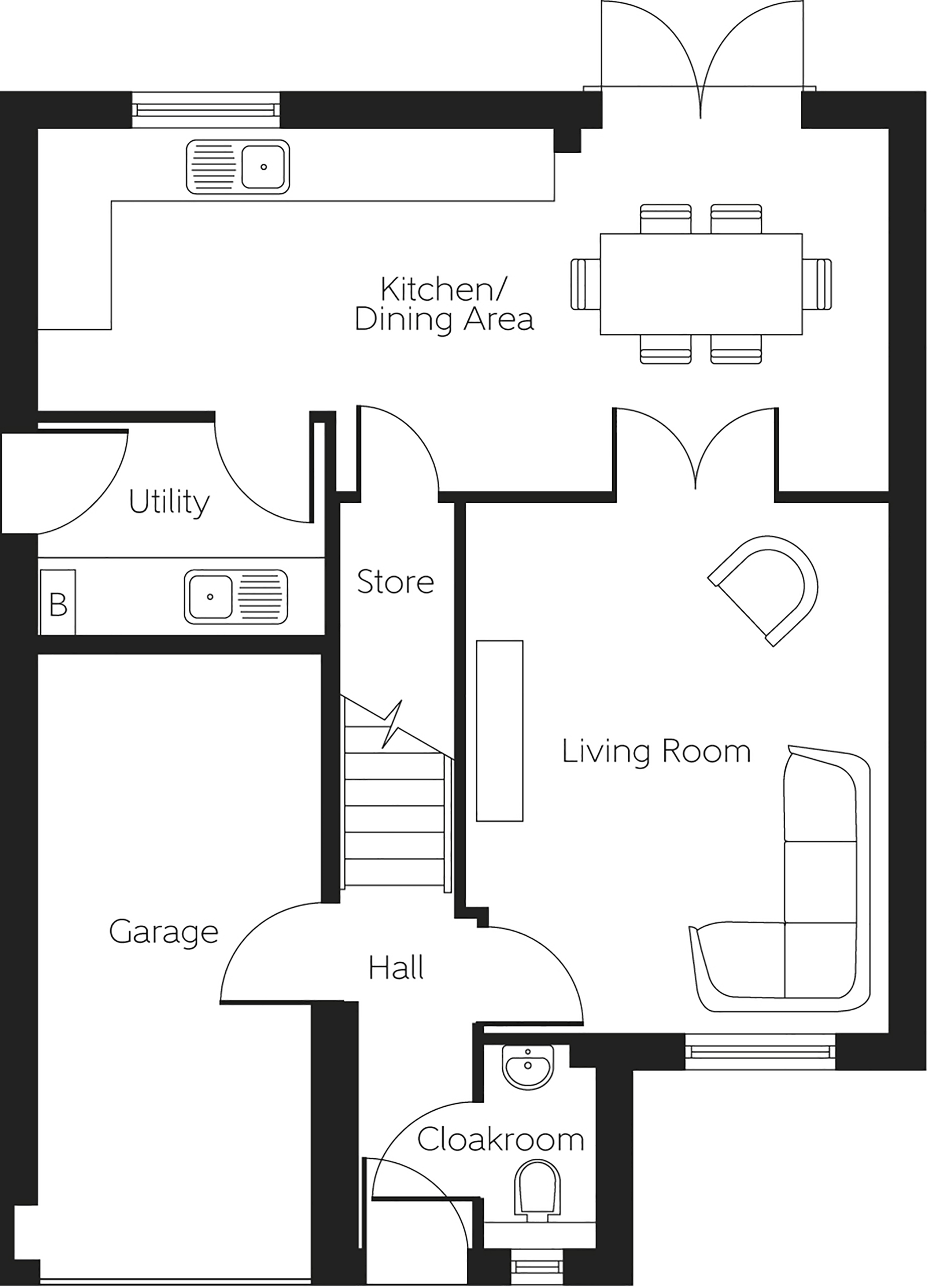 The dining area benefits from French doors that open on to the garden and is also connected by double doors to the living room. A cloakroom and an understairs storage cupboard complete this level.
