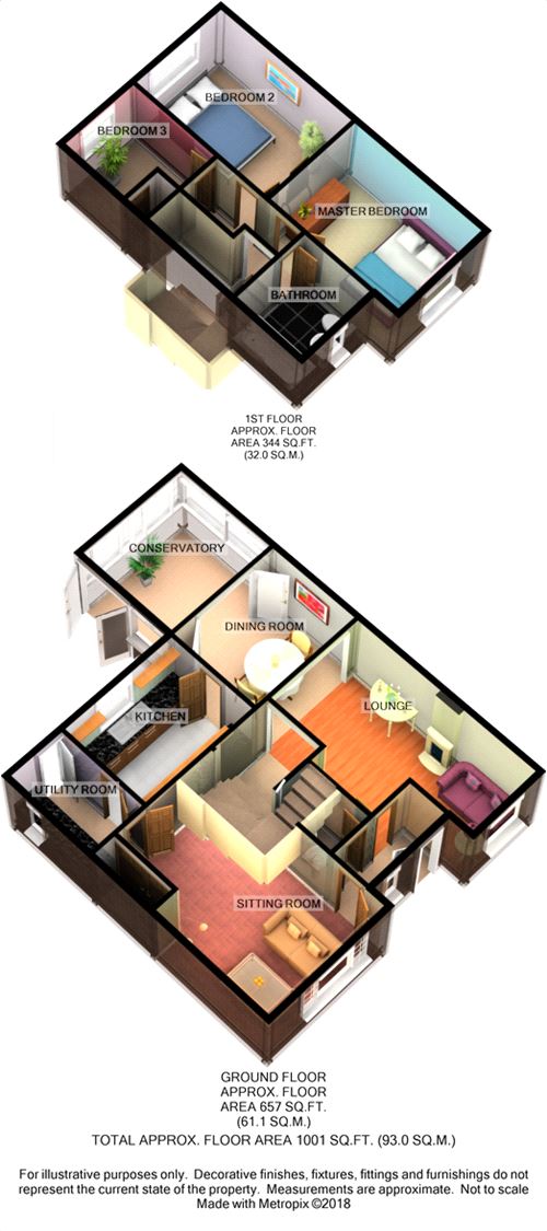 In full, the property comprises: Entrance hallway, guest W/C, sitting room, lounge, dining room, kitchen/utility room and conservatory. To the first floor are two double bedrooms, a single bedroom and bathroom suite.