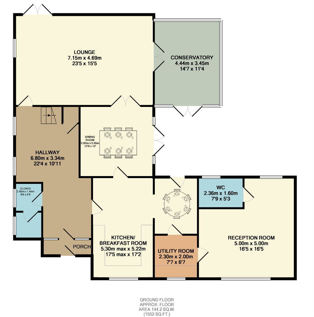 Individually designed four-five bedroom detached family home ~Spacious hallway~ Lounge~ Dining room~ Conservatory~ Breakfast kitchen~ Converted garage~Occupying a prominent corner plot~ Gardens to front~ Gardens to rear ~ Flexible accommodation~ Ideal for a large family/with elderly relatives ~ Close to schools at all levels ~ Easy reach of daily amenities, Motorway & Rail links ~ Gated access ~ Driveway parking