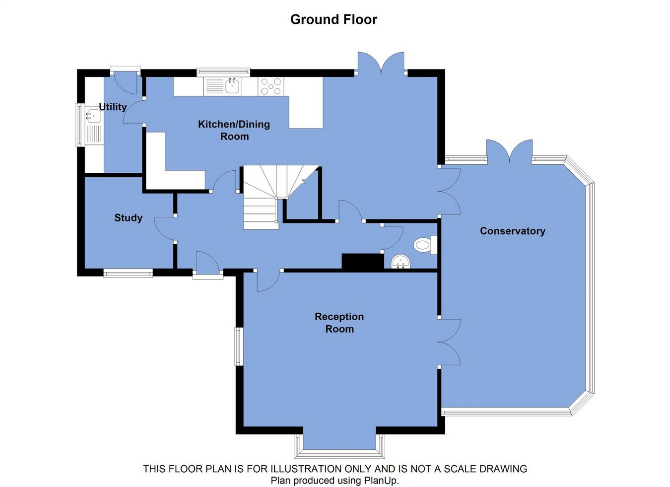 7' 7" x 7' 10" not including the bay (2.31m x 2.39m) Study / Playroom with fitted cupboard.