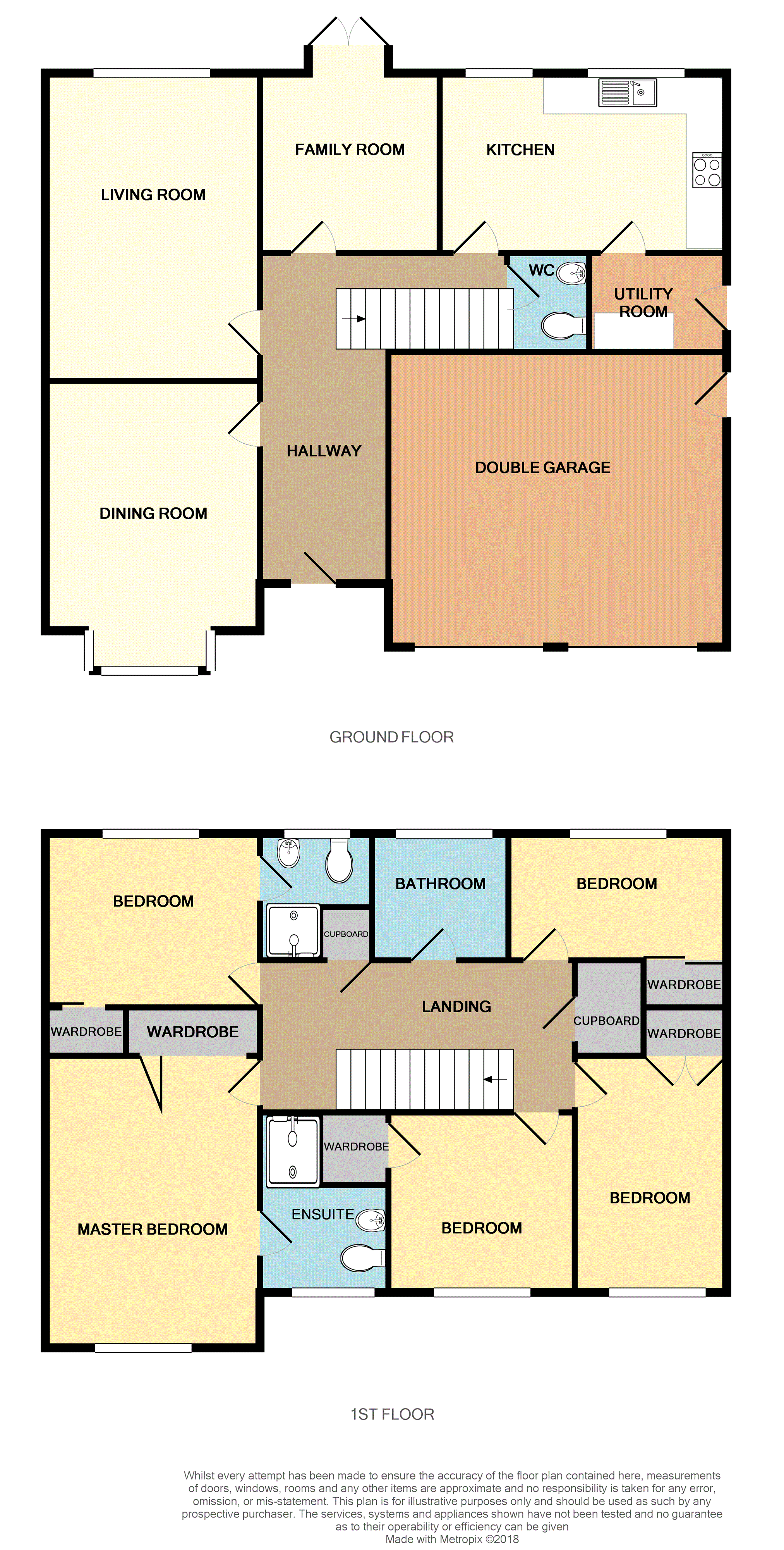 The welcoming entrance hallway leads onto the living room, dining room, family room, breakfasting kitchen and downstairs cloakroom as well as the feature stairway to the first floor.