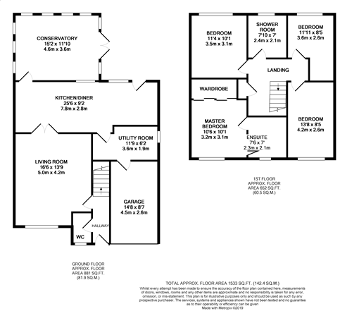 Modern detached house • four bedrooms • two bathrooms • good sized conservatory • alarm system • en suite master bedroom • gas central heating • UPVC double glazing.