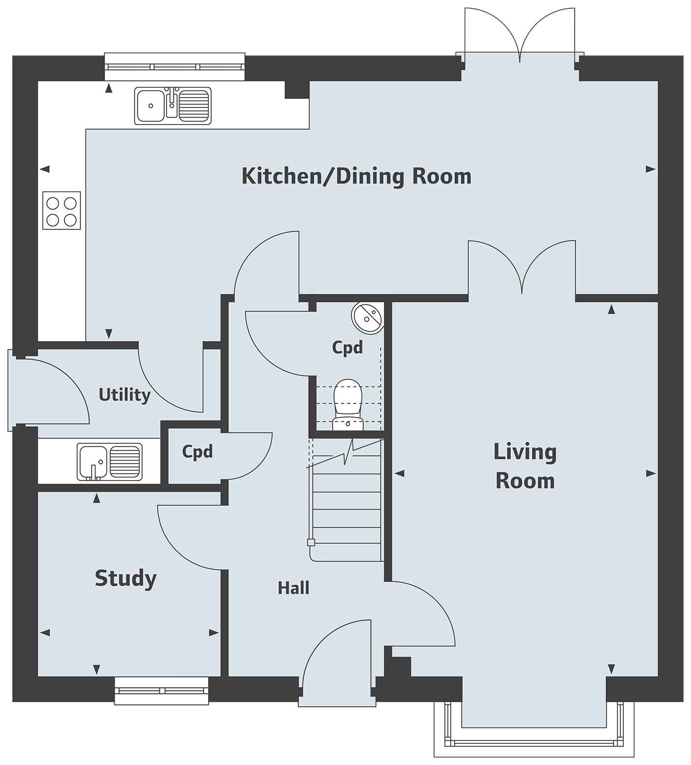 The Pembroke is a wonderful 4 bedroom detached home with garage, featuring a large kitchen/dining room with utility and French doors to the garden, separate living room, study, cloakroom, family bathroom and en-suite to bedroom 1.