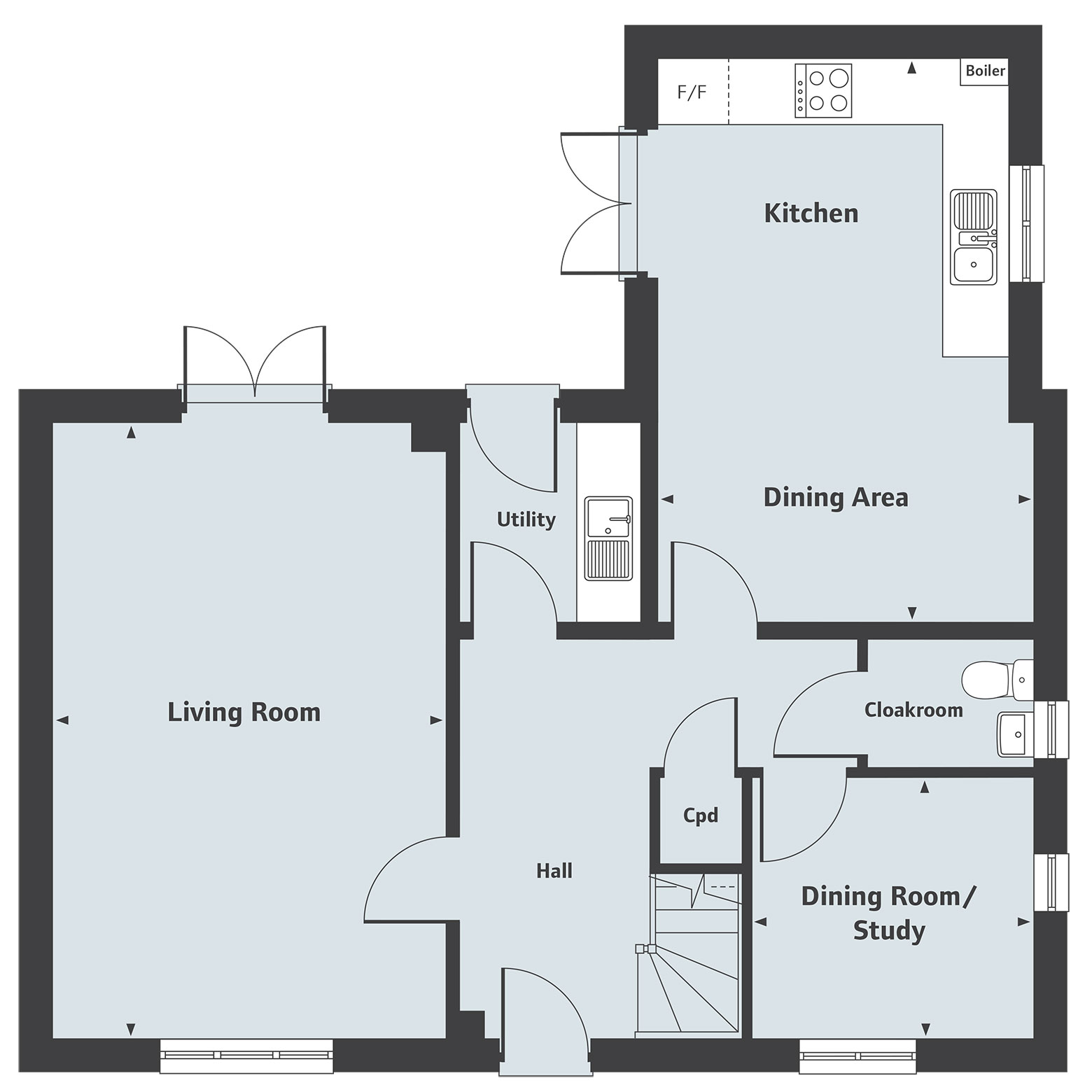 The Kempthorne is a large, welcoming and versatile 2-storey, 4-bedroom home family home with garage. Includes a large open-plan kitchen/dining/family area, offering fully glazed double doors to the rear garden. A utility room also leads directly to the garden providing additional space for even the busiest of families. A separate dual-aspect living room is spacious and bright, with a large window at the front and a further set of double patio doors at the rear.