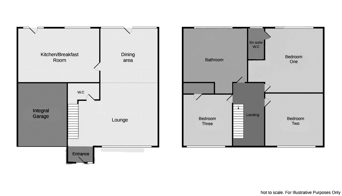 En-suite W.C PVCu double glazed obscured window to rear, vanity unit with inset wash hand basin, W.C, wall mounted chrome heated towel rail, tiled splash backs.