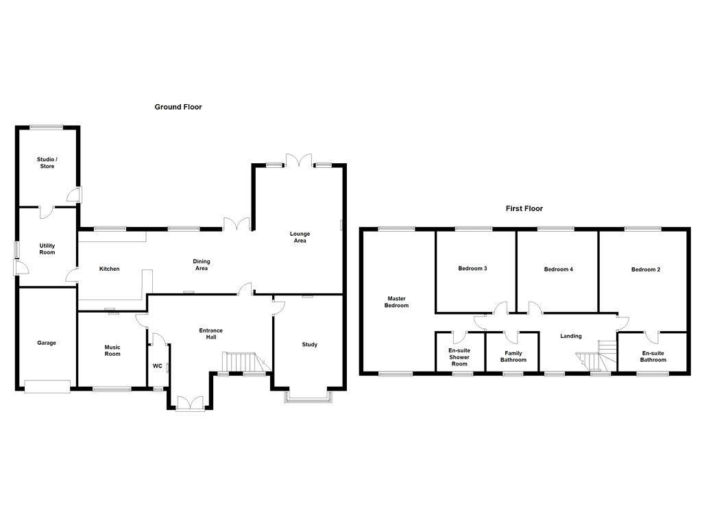On the first floor is an open galleried seating landing with views towards the countryside, access to all bedrooms and the family bathroom. The 19ft master bedroom has views to the front and rear, built in wardrobes plus a separate en suite shower room with his and hers sinks, second bedroom having rear views and the advantage of an en suite bathroom. There is at further 13ft third bedroom and 12ft fourth bedroom with all bedrooms have fitted with wardrobes.