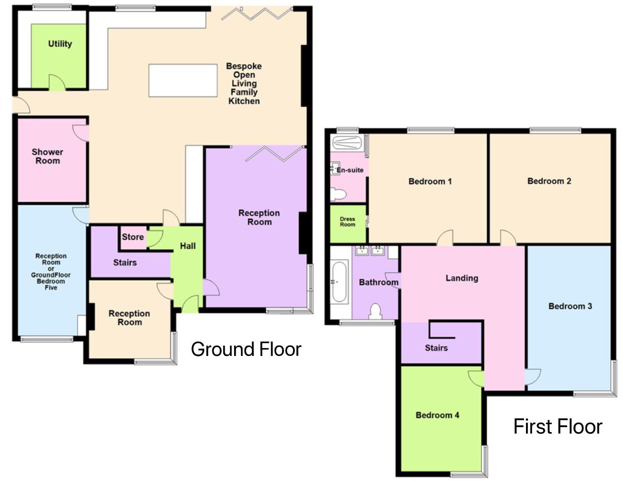 Superb bespoke individual & vastly extended four / five bedroom detached family home must be viewed. Originally built in the 1940s this Art Deco home drew heavily on its Bauhaus influences of the period. The property still having many of its original features including parquet flooring and art deco fireplaces in the original part of the dwelling. However it has undergone a truly stunning extension to the rear with over 1000 sq ft having been added. The properties accommodation now comprises of, entrance hall, three reception rooms (one of which could be a ground floor bedroom five), fantastic spacious rear extended open family living area with bespoke fitted kitchen and bi folding patio doors 30’11” max x 27’0” max, separate utility room and a excellent downstairs shower room which could service a ground floor bedroom five. On the first floor is a feature landing with Art Deco glazing and doors leading to four good bedrooms and a lovely family bathroom. The master bedroom having a dressing room and En suite. To the outside front is a driveway providing parking leading to a double garage and pedestrian steps lead up to the property. To the rear is an extensive patio area a good size garden laid to lawn with views. The property will come with a full building control and professional consultants structural certificate for mortgage lenders.
