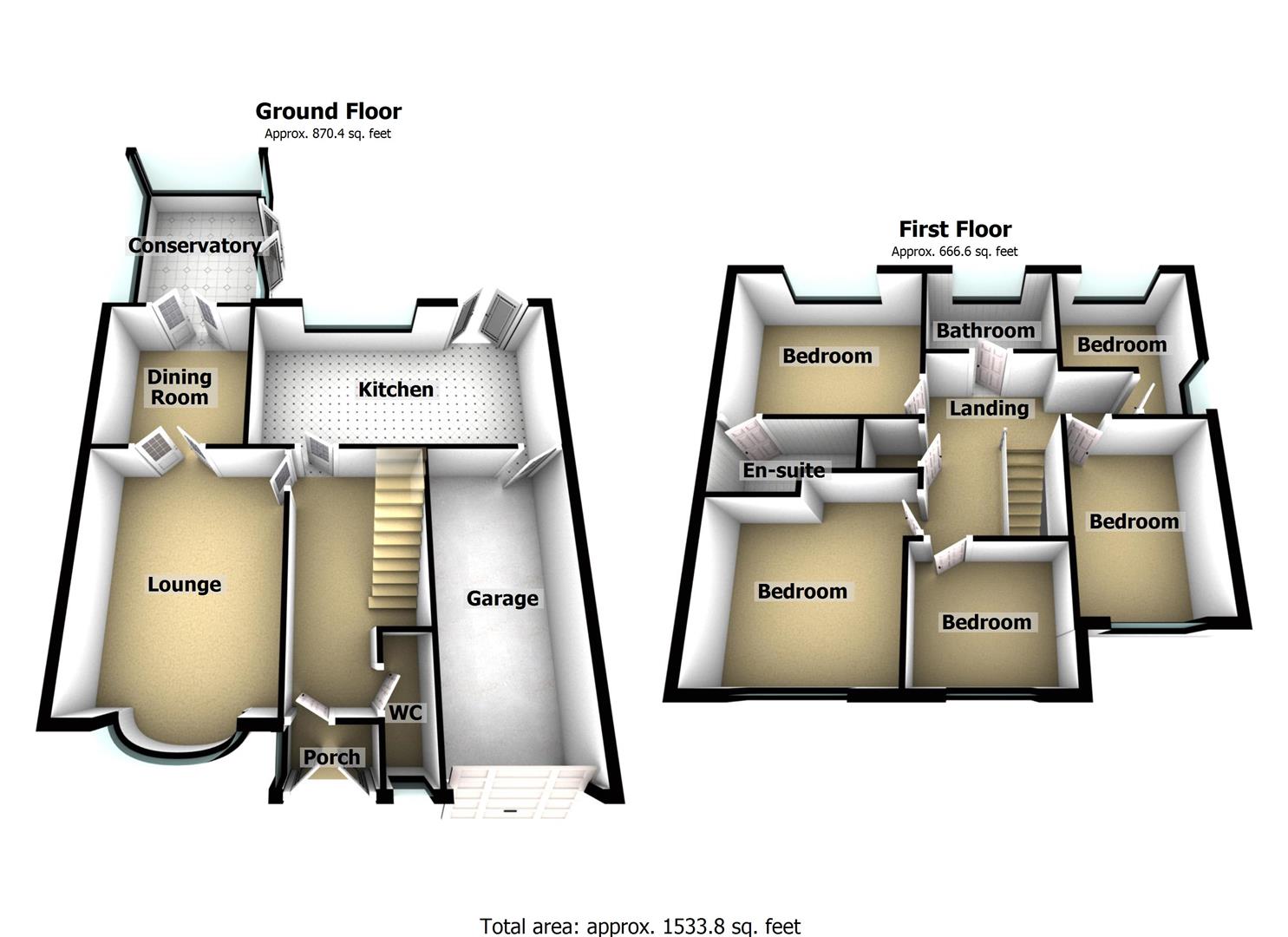 Generous heated conservatory taking full advantage of lawned garden. Laminate flooring.