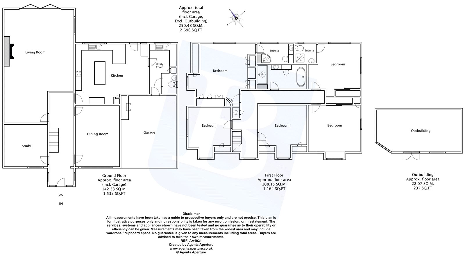 The internal accommodation boasts; 28' lounge, 10' study, 15' dining room, 18' kitchen/breakfast room, utility room, ground floor cloakroom, five double bedrooms, two en suites and family bathroom.
