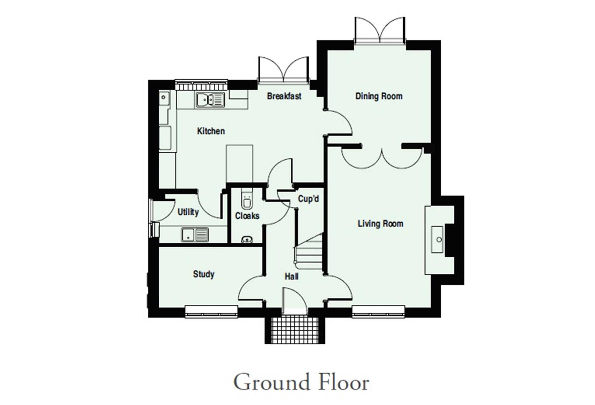 The Allington - A stunning lounge with inglenook log burner fire place. Double doors open to the dining room which is at the front of the home, there is also a study, cloakroom and kitchen/ breakfast room, with doors leading to the garden. The kitchen is fitted with integrated appliances, Pyrolitic oven, combi-microwave, quartz worktops and utility room with side door access. Upstairs there are four bedrooms, two with en-suites and a family bathroom. Bedrooms 1,2, and 3 have built in wardrobes.