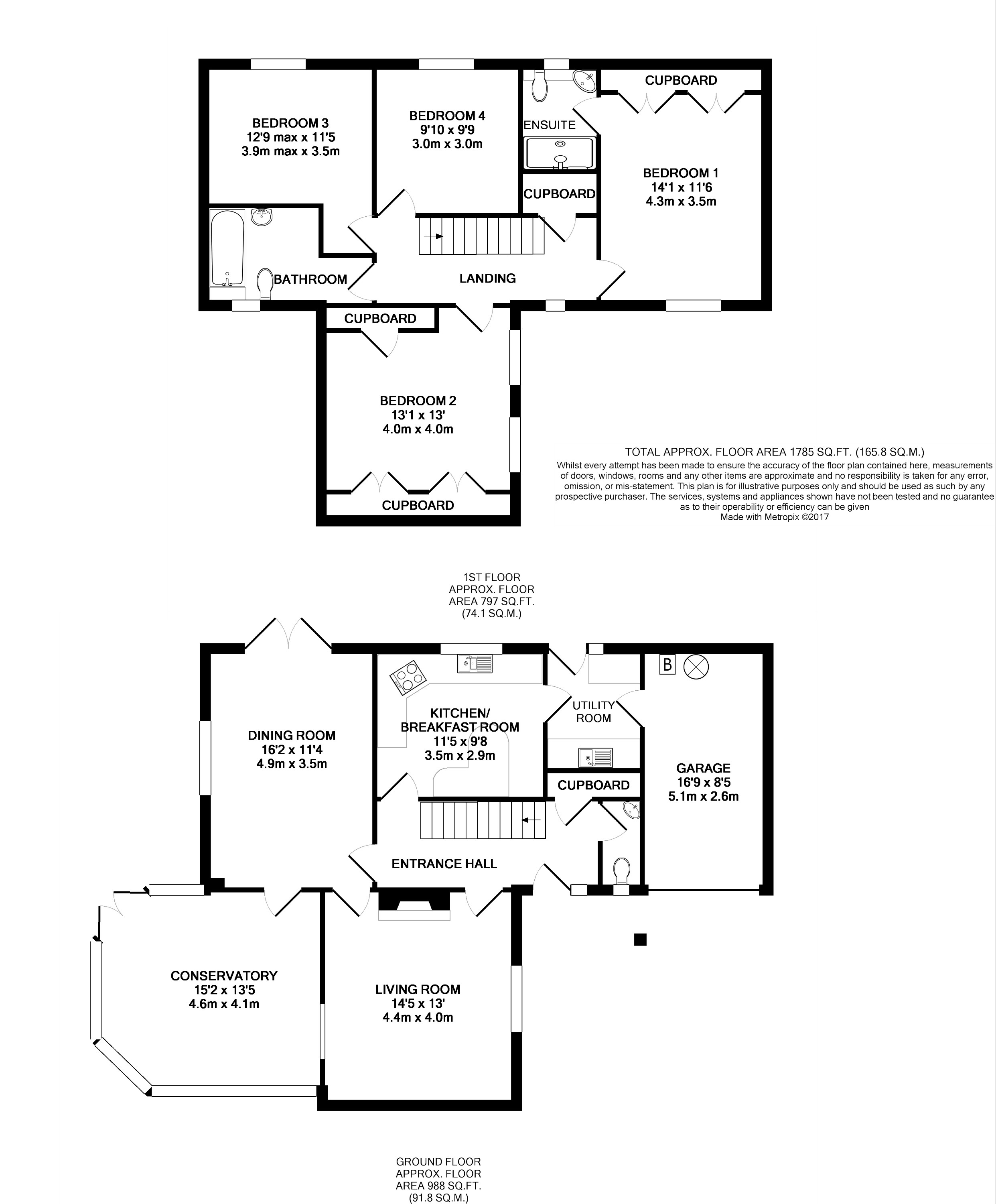 The beautifully presented accommodation is arranged over two floors and extends in all to 1,649 . The current owners have made a number of improvements to the property which include under floor heating, replacement kitchen, mains pressure Hot Water Megaflow system, replacement double glazing throughout, cavity wall insulation, and an all year round rear conservatory. The ground floor comprises an entrance hall with WC off, living room with wood burner, dining room and stylish modern fitted kitchen with built in appliances, breakfast bar and useful utility room off. On the first floor is a modern family bathroom with electric power shower over bath and four double bedrooms whilst the master bedroom has an en-suite wet room and ample built in storage.