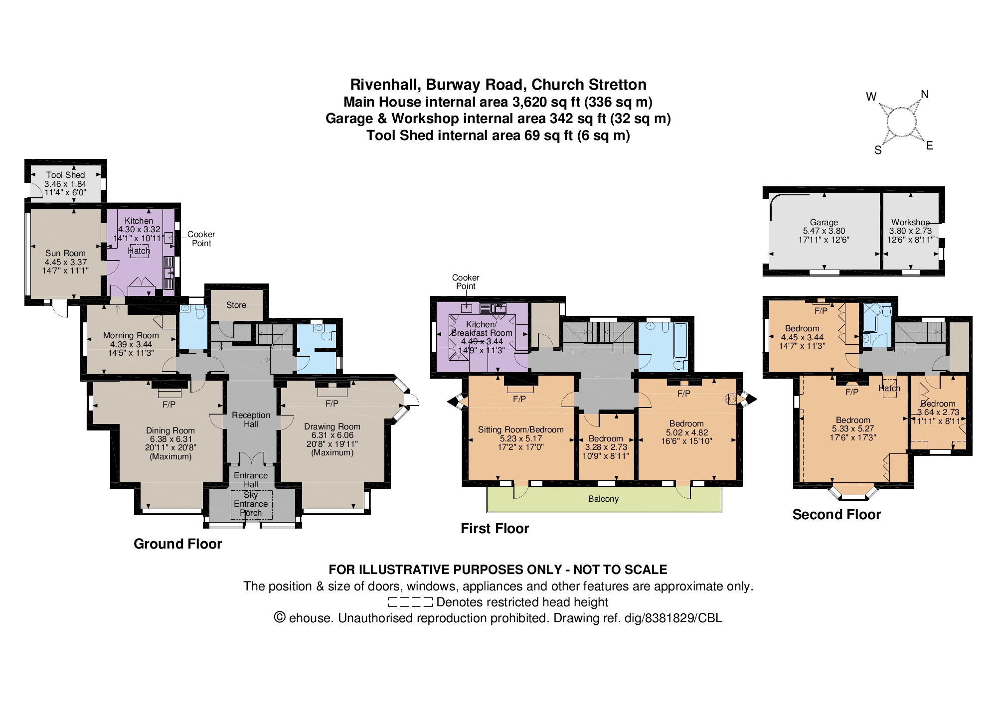 A striking staircase rises to the first floor landing where a kitchen/breakfast room is fitted with a range of wooden fronted units and integrated appliances including a gas hob, double oven and fridge. There are two principal bedrooms rooms that both enjoy access to a superb balcony with elevated views of the Shropshire Hills, one of which is currently used as an informal sitting room. An additional bedroom and a family bathroom complete the first floor accommodation, while a further 3 bedrooms and a bathroom are located on the third floor.