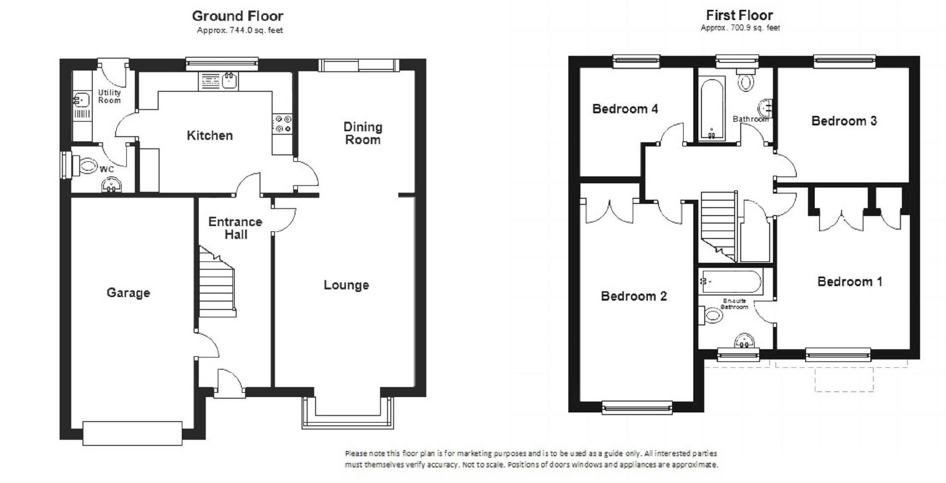 A good sized well appointed family house built by Persimmon to an attractive and popular design. Set back from the road and on a generous plot, the property offers good sized family accommodation including two reception rooms, well fitted, modern, kitchen, cloakroom and utility room. Upstairs all there are three double bedrooms and a forth also of decent size and two bathrooms, one of which is en suite. The property enjoys the benefit of full natural gas fired central heating and is UPVC double glazed.