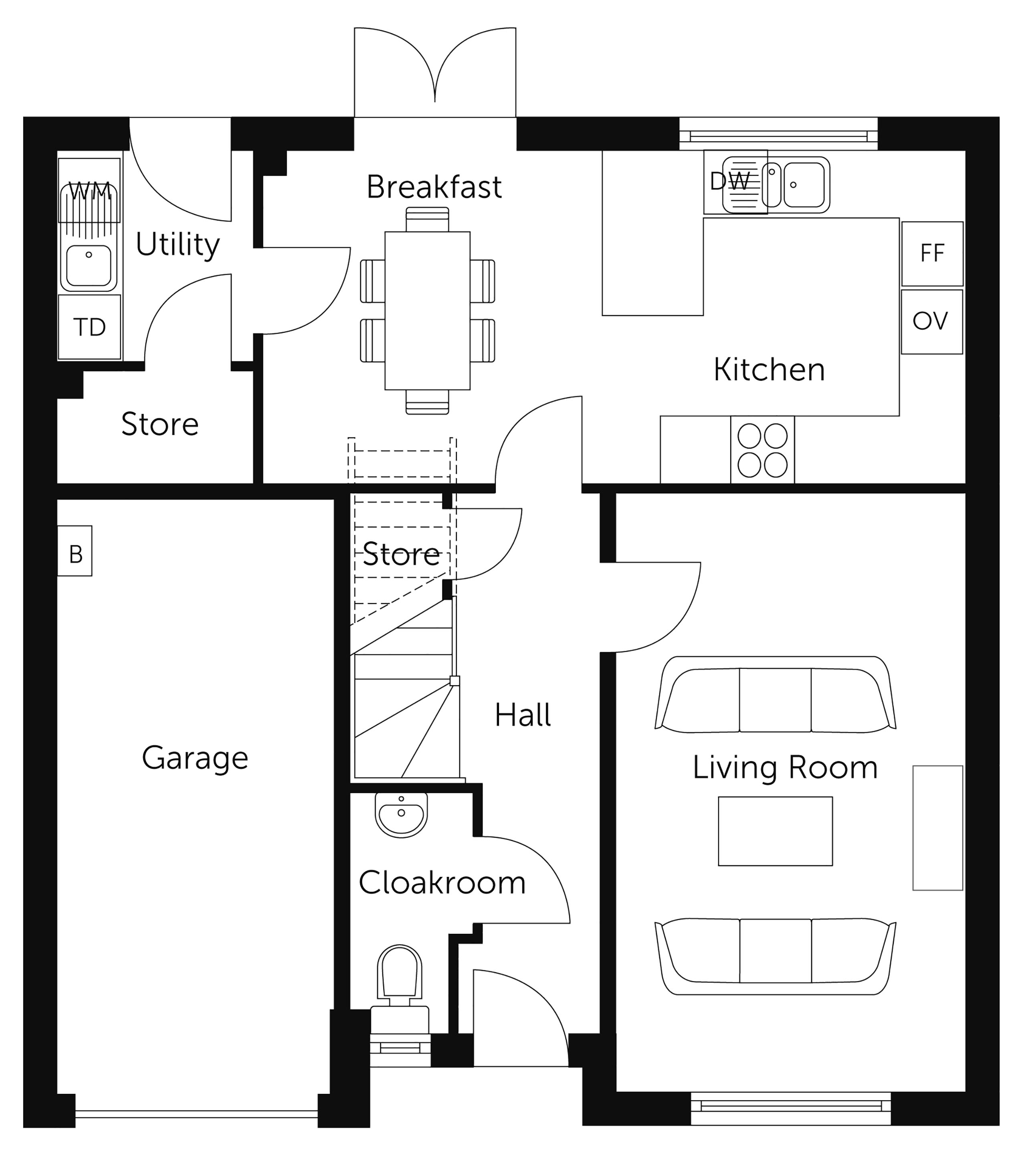 The Victoria is a spacious 4 bedroom home with integral single garage. Downstairs comprises a spacious lounge, dining kitchen, utility room and downstairs w.C. Upstairs you will find 4 well appointed bedrooms the master with en-suite facility and a family bathroom.