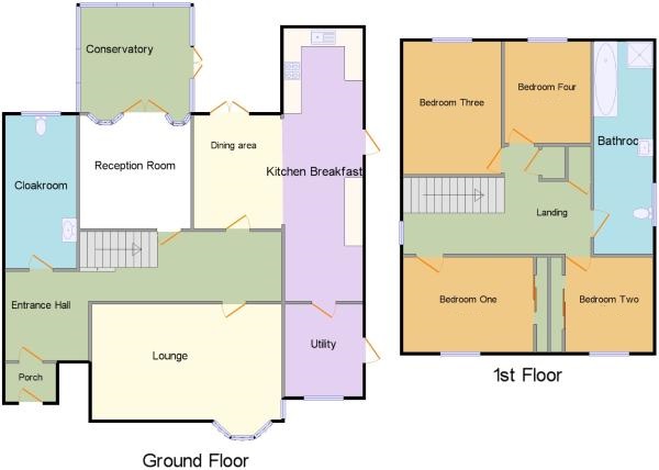 Entrance hall Glass panel front door, power points, two radiators, stairs to first floor, coving to ceiling, under stairs storage cupboard, doors to living room, kitchen, cloakroom and dining room.