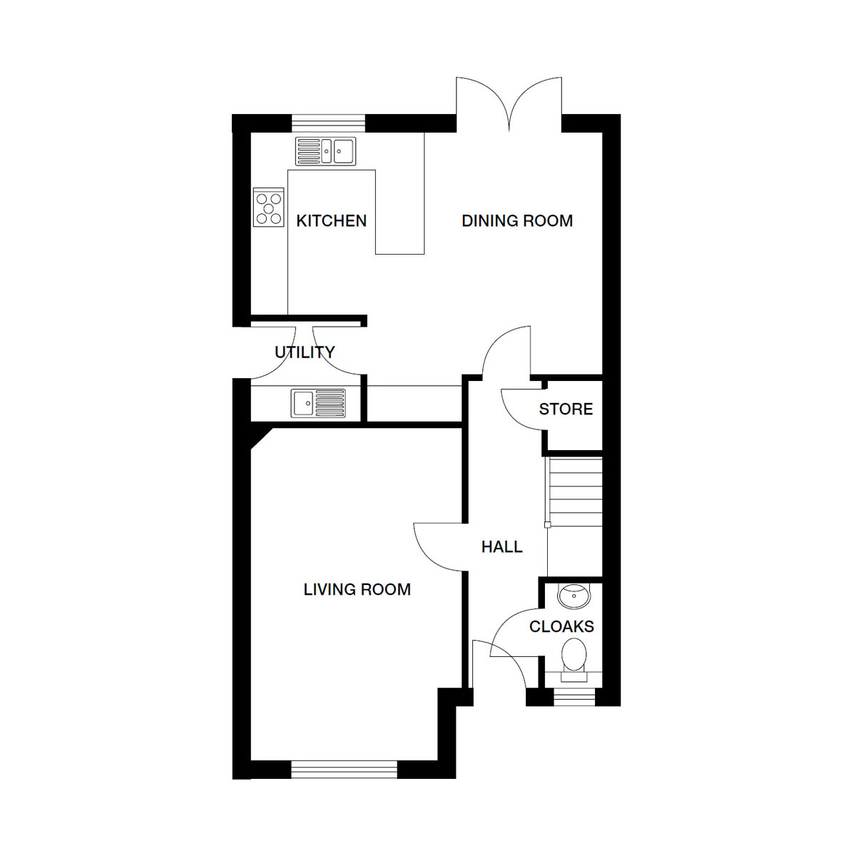 The Hardy is a four bedroom family home for sale with a single garage and three parking spaces comprising of an open plan kitchen / dining room with French doors, separate living room, utility and a cloakroom. To the first floor there are four bedrooms, en-suite to bedroom one and a family bathroom.
