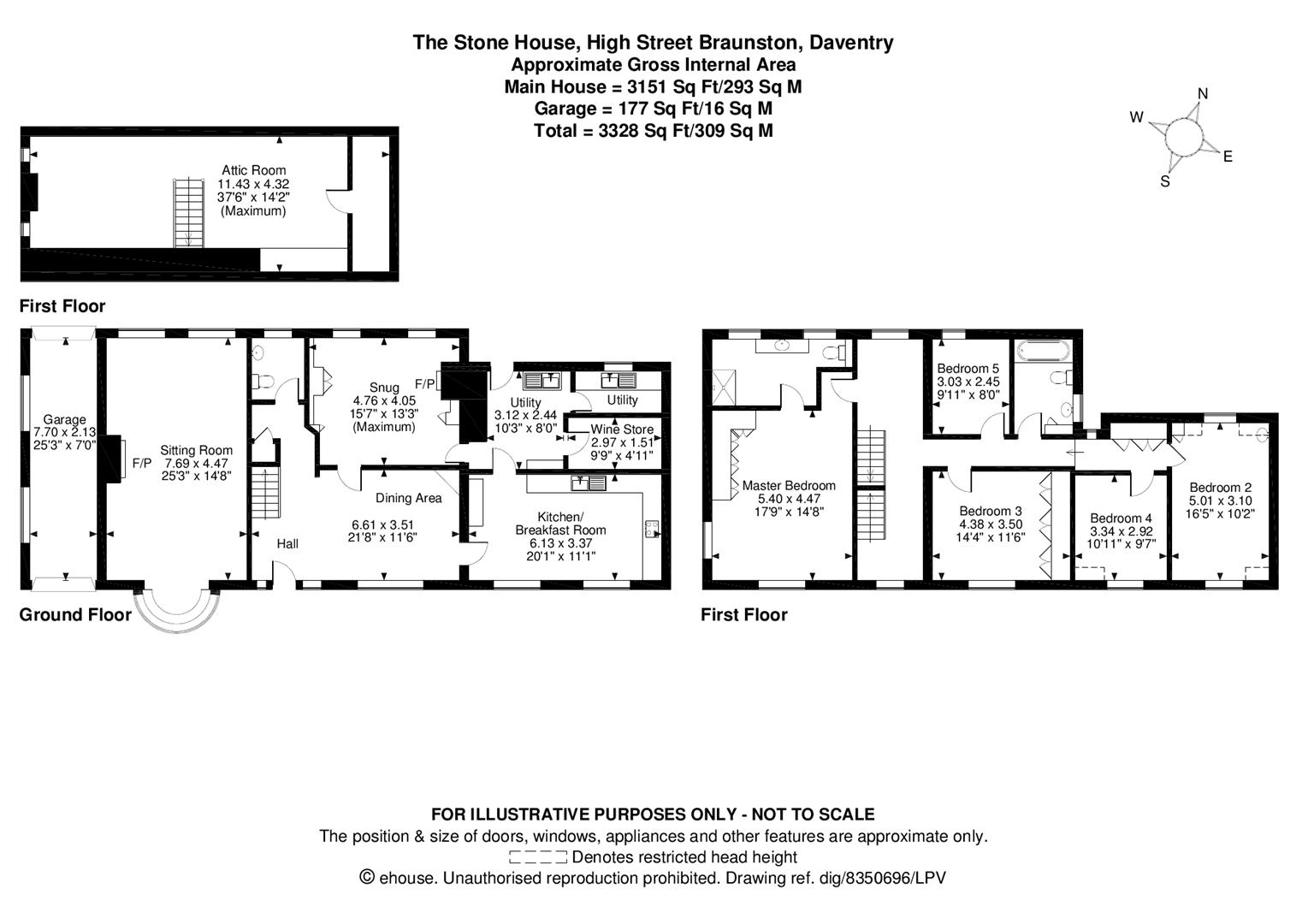 Introduction - The Stone House was constructed during Post War Britain in local stone and sits beautifully set back from the main road within the village tucked away in just under half an acre of formal gardens. The property offers extensive accommodation including five bedrooms, family bathroom, master bedroom with en-suite shower room whilst on the ground floor there is a drawing room, reception hall/dining room, study/snug, a refitted bespoke kitchen, utility room, wine store and boiler room. Outside there is a private gated driveway that leads to a large gravelled parking area, a tandem garage and glorious south facing gardens to the front. The house has the provision of oil fired central heating and double glazed windows, together with a very useful attic room the property offers over 3,500 ft of versatile accommodation.