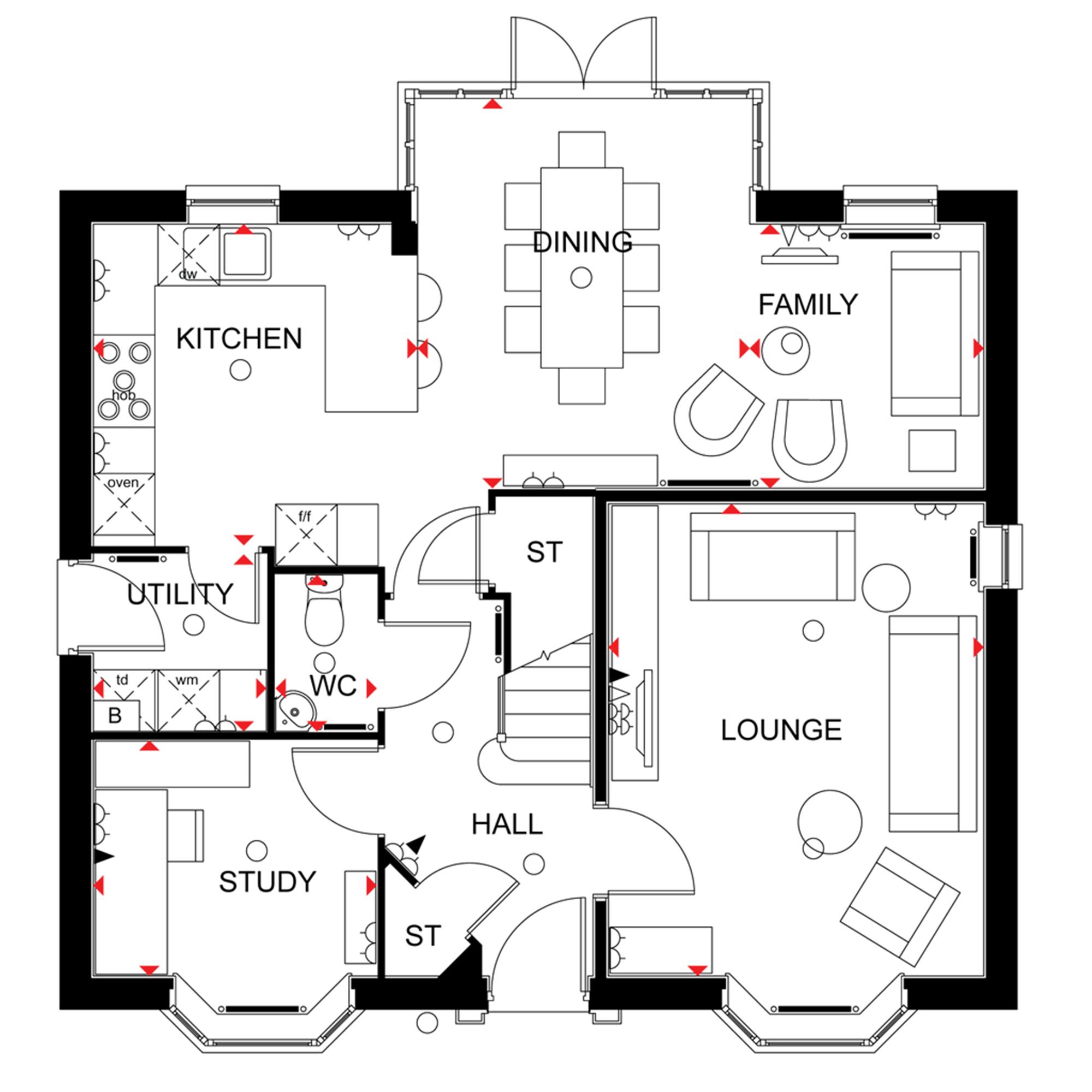 The Bradgate is a beautifully presented detached family home with south-facing garden . The downstairs comprises of a stylish kitchen with family and dining areas with a glazed bay window with French doors leading to the garden, there is also a spacious lounge and study. Upstairs you will find a master bedroom with an en suite and a further three double bedrooms as well as a family bathroom.