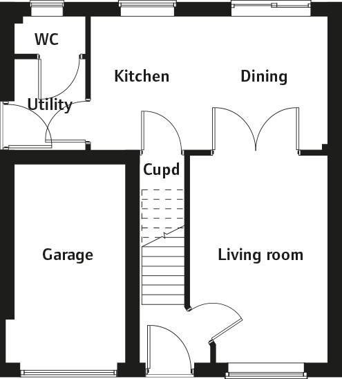 The open plan kitchen and dining room offer a great space for family dining and entertaining, complemented by a practical utility room. The remaining rooms on this floor include: A spacious living room ideal for relaxing and a convenient downstairs cloakroom.