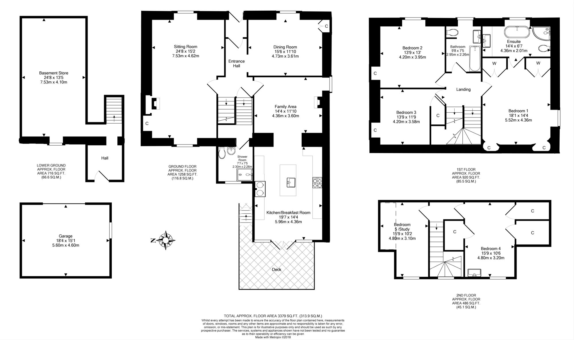 Rising to the second floor there are two additional rooms. One further double bedroom and the last with flexibility of use, currently utilized as a study/bedroom5 and bathroom.