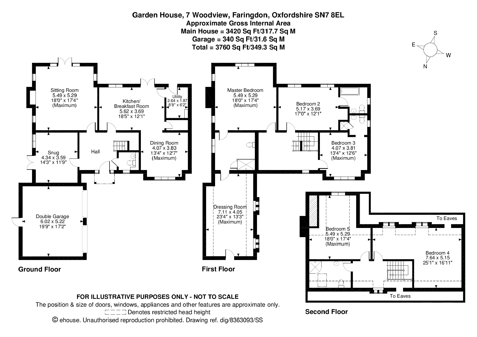Total floor area: C.3760 Sq ft / 349 sq m including double garage