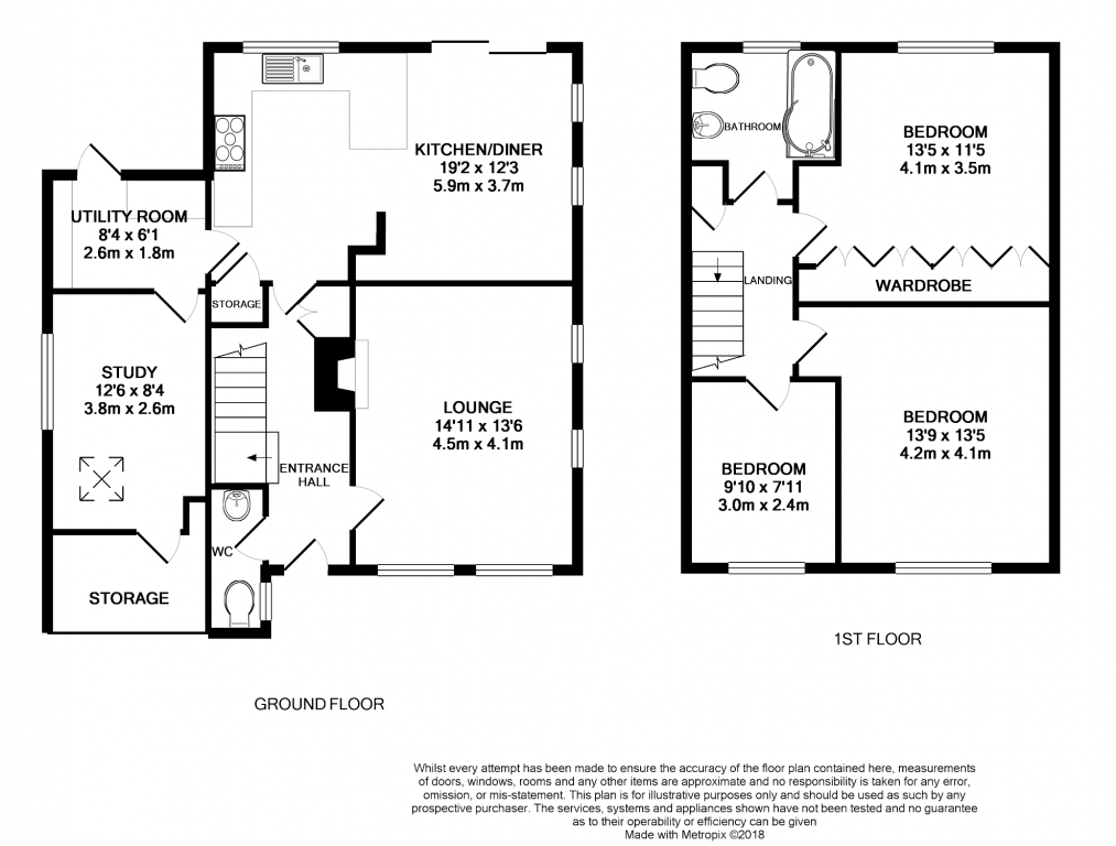 To the front of the property is a gravelled driveway with parking for a number of vehicles, as well as the potential to increase the amount of parking space where there are currently outbuildings for storage. The property has an attached garage, but this is currently being utilised as additional internal accommodation in the form of a study. The garden wraps around the remainder of the house, with a wide side plot to the far side, which is mostly laid to lawn. The rear garden area is well kept and private, with a raised laid to lawn section as well as a patio suitable for a table and chairs.