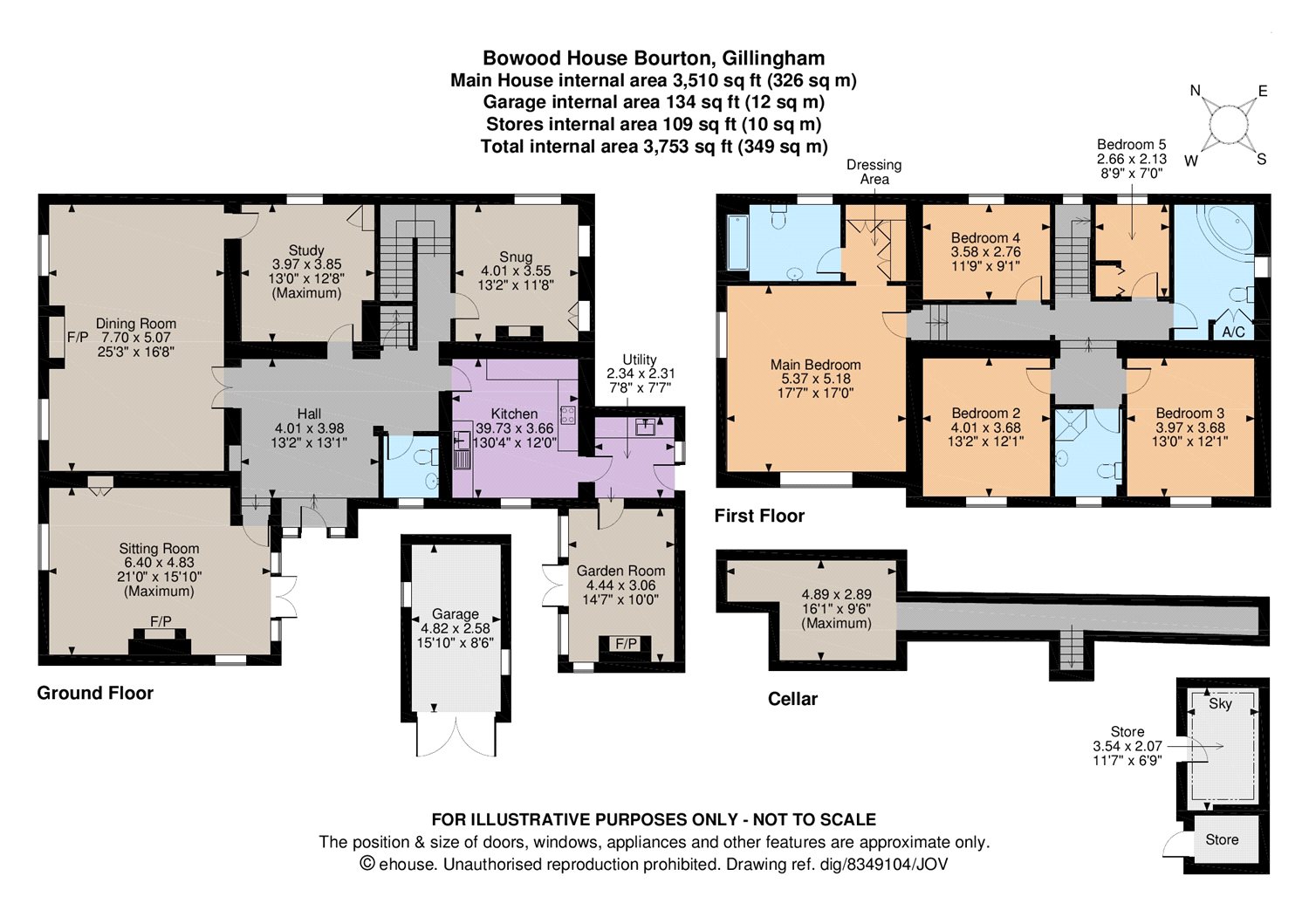 Upstairs, a dual aspect master bedroom includes an en suite bathroom and dressing area, there are four further bedrooms and two bathrooms.